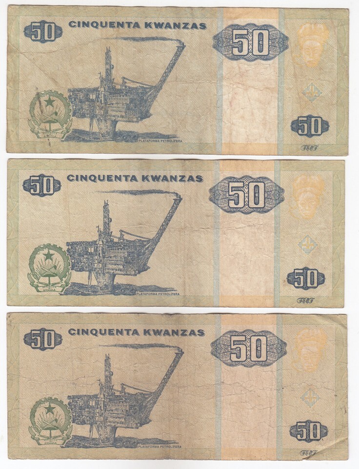 Angola, 50 Kwanzas, (full of 3) Banco Nacional De Angola Billets de Banque- s...