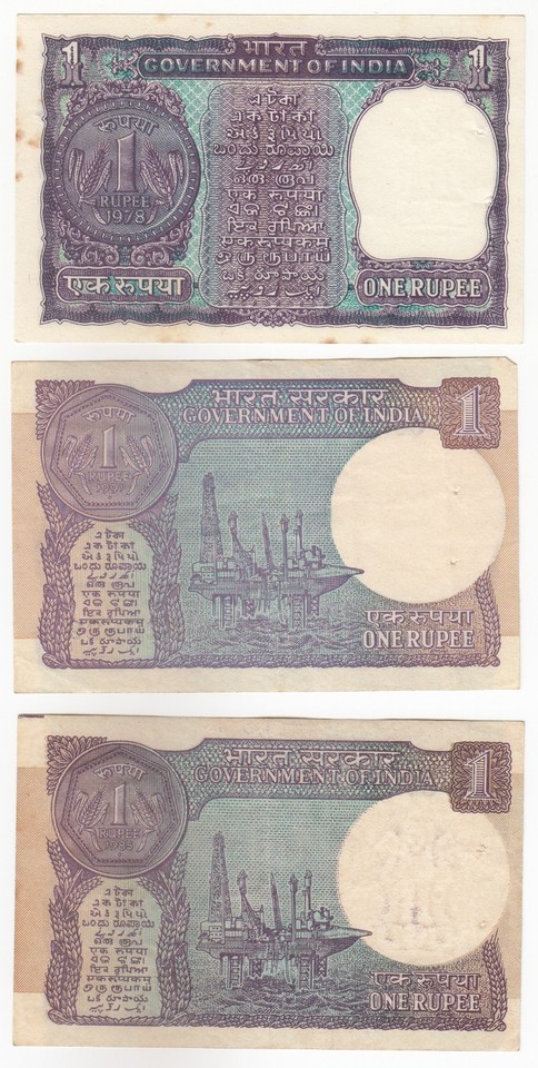 India, 1 Rupees Set of 3, All Different Sign Old Issues Banknotes- show origi...