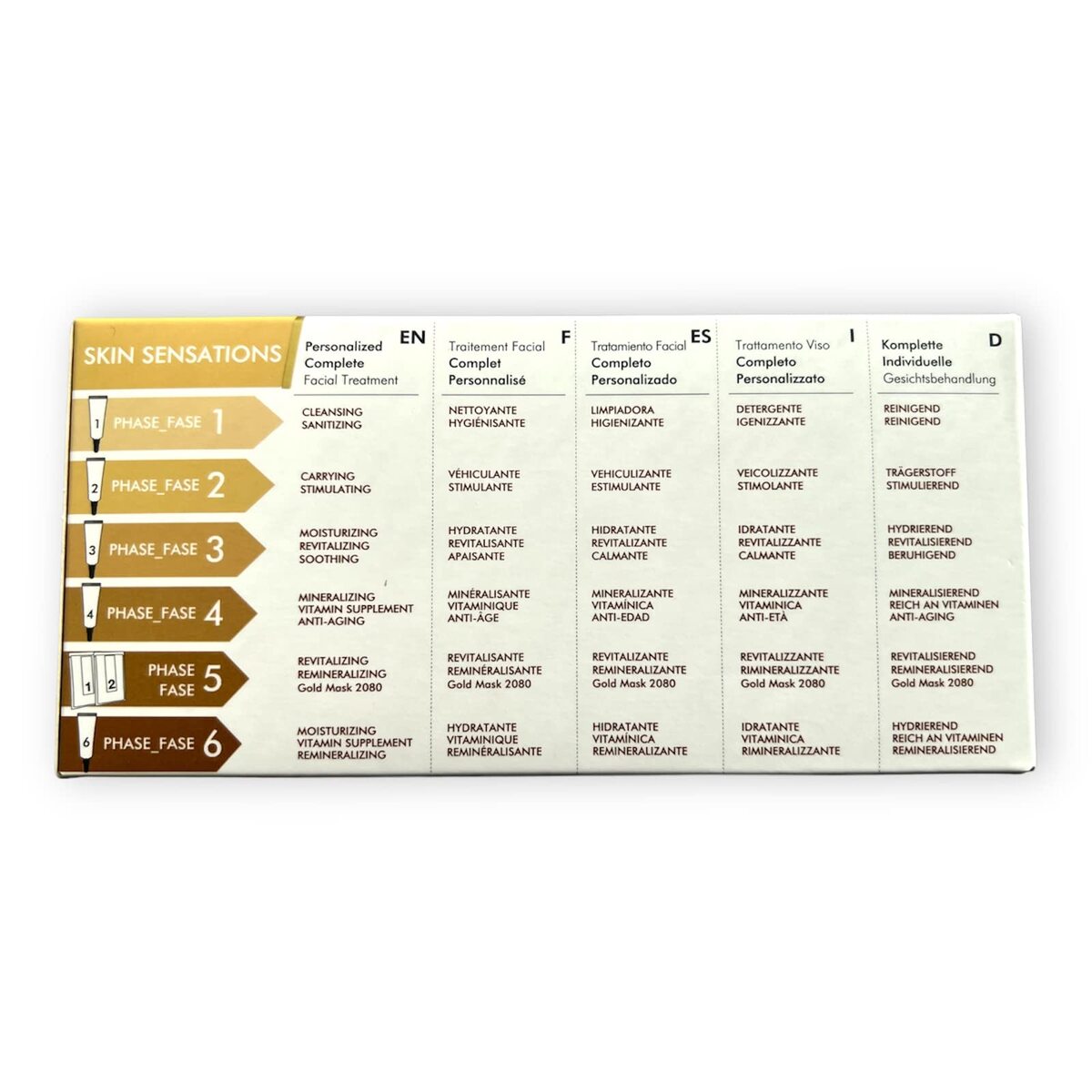 The pack contains 6 treatment phases including Premium Quality Algae Peel Off Mask (Gold) with 24-carat gold suitable for 2 professional facials.