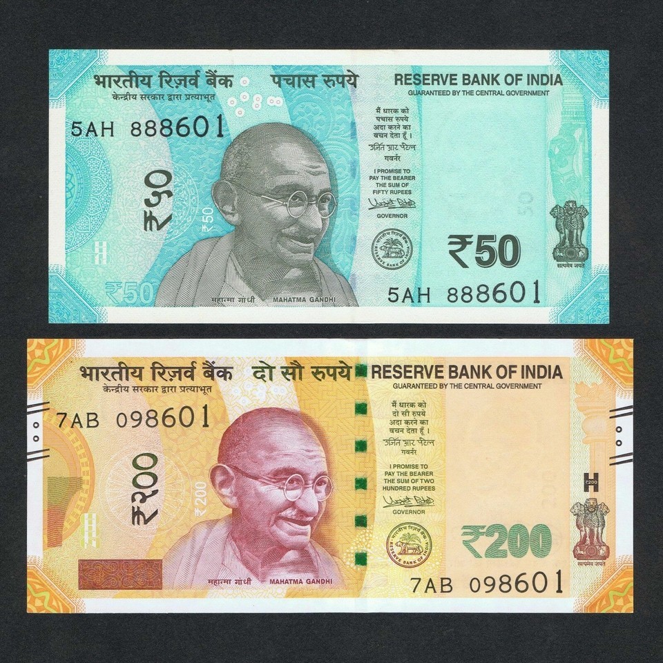 India "Set 2" 50+200 Rupees, New Banknote Issue, UNC- show original title Or...