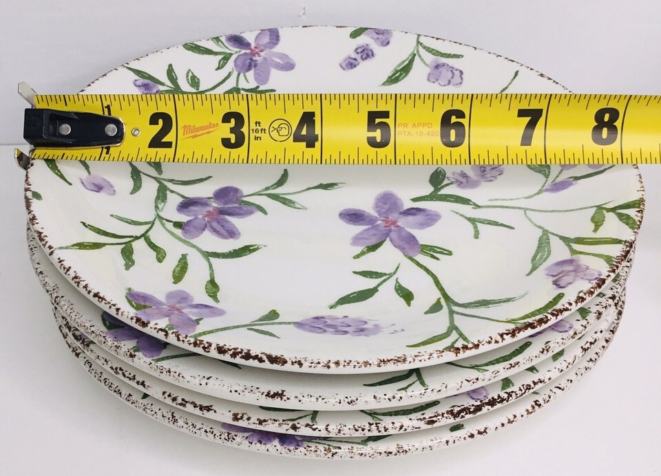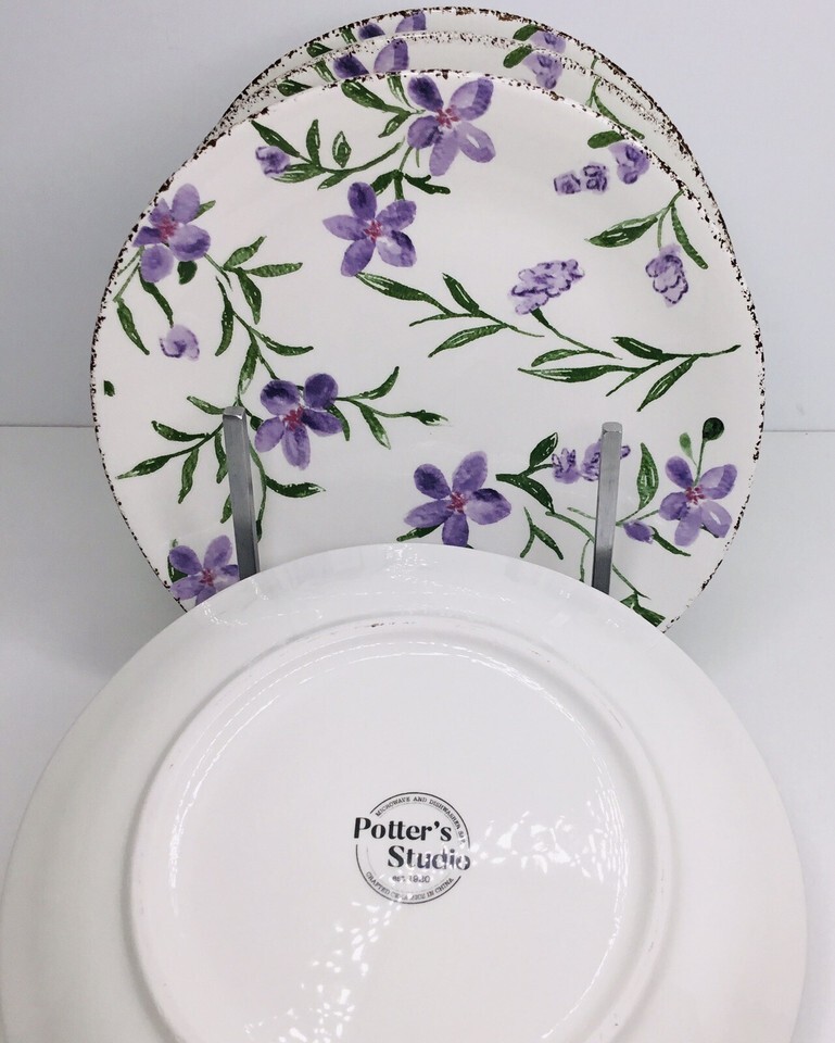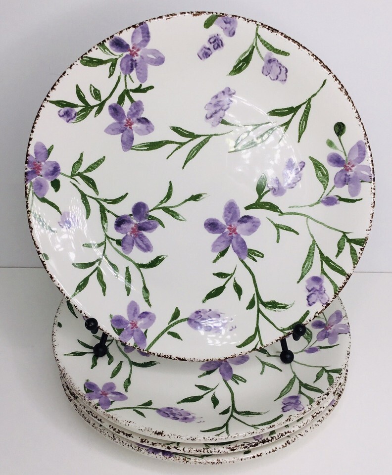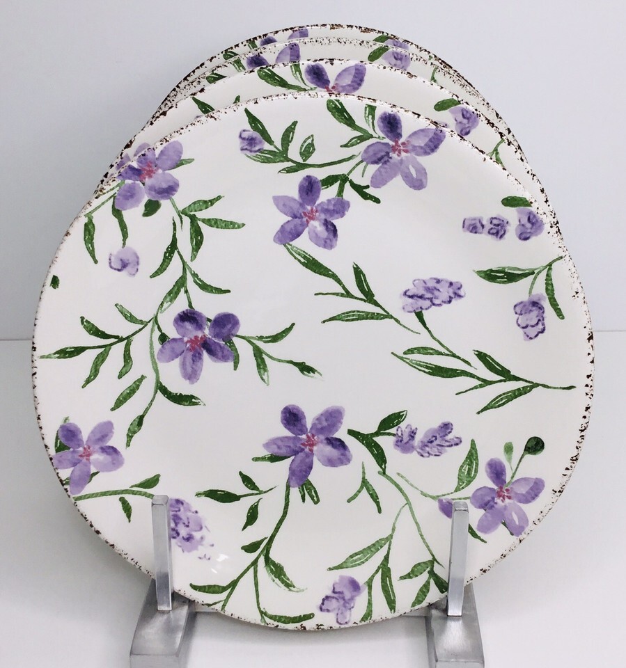 4 Salad Plates Violets Purple Flowers, 8 1/4" Potter's Studio NEW