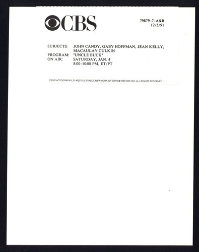 7 x 9 press photo-CBS TV UNCLE BUCK, John Candy, Gaby Hoffman, Macaulay Culkin +