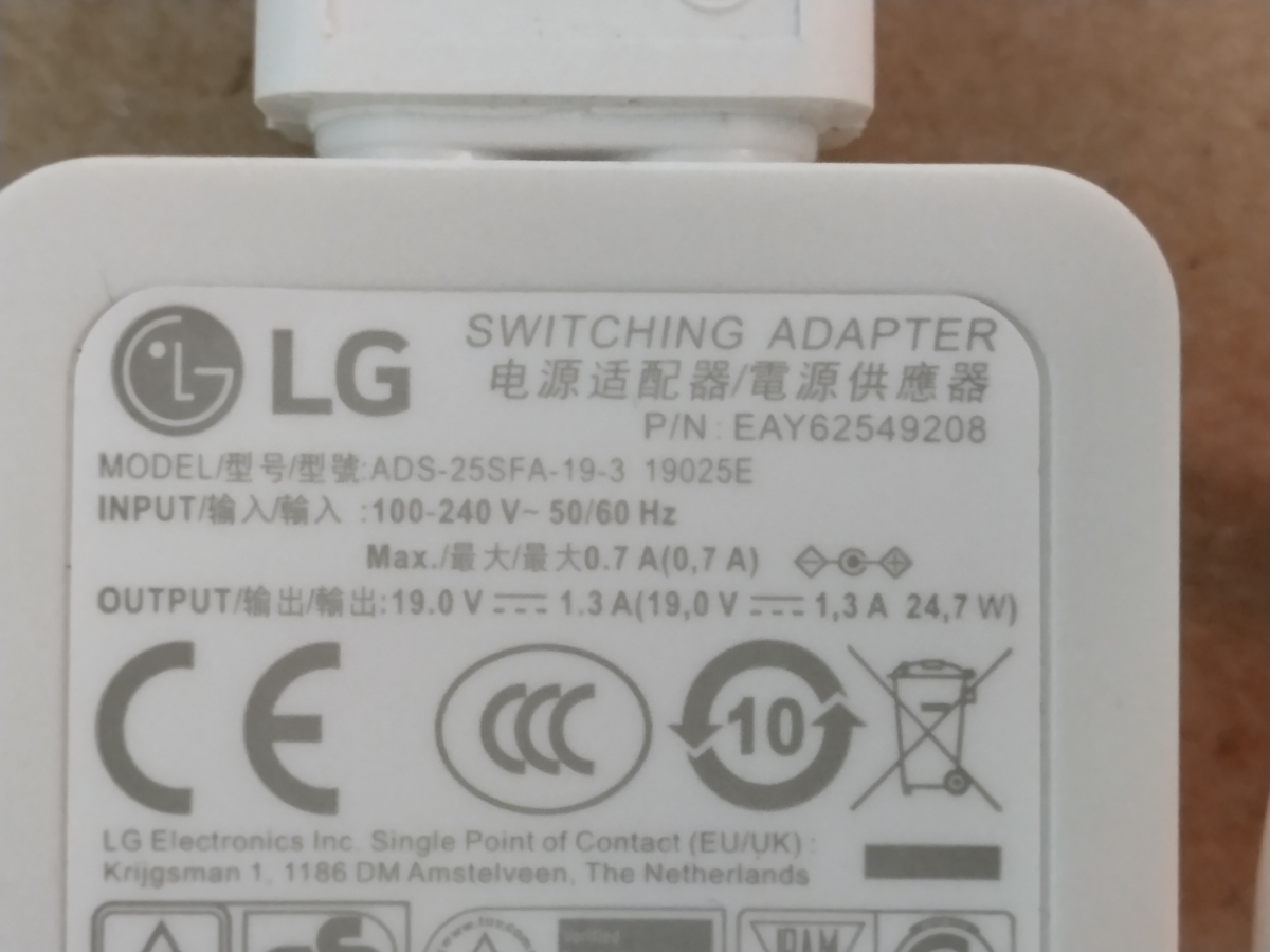 Genuine LG AC adaptor P/N EAY62549208 Model ADS-25SFA-19-3
