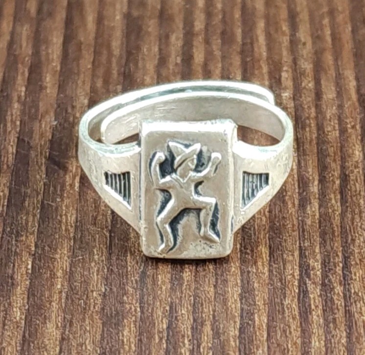 1940s Sterling Silver Brownie Elf Girl Scout Signet Ring Size 5 & Adjustable