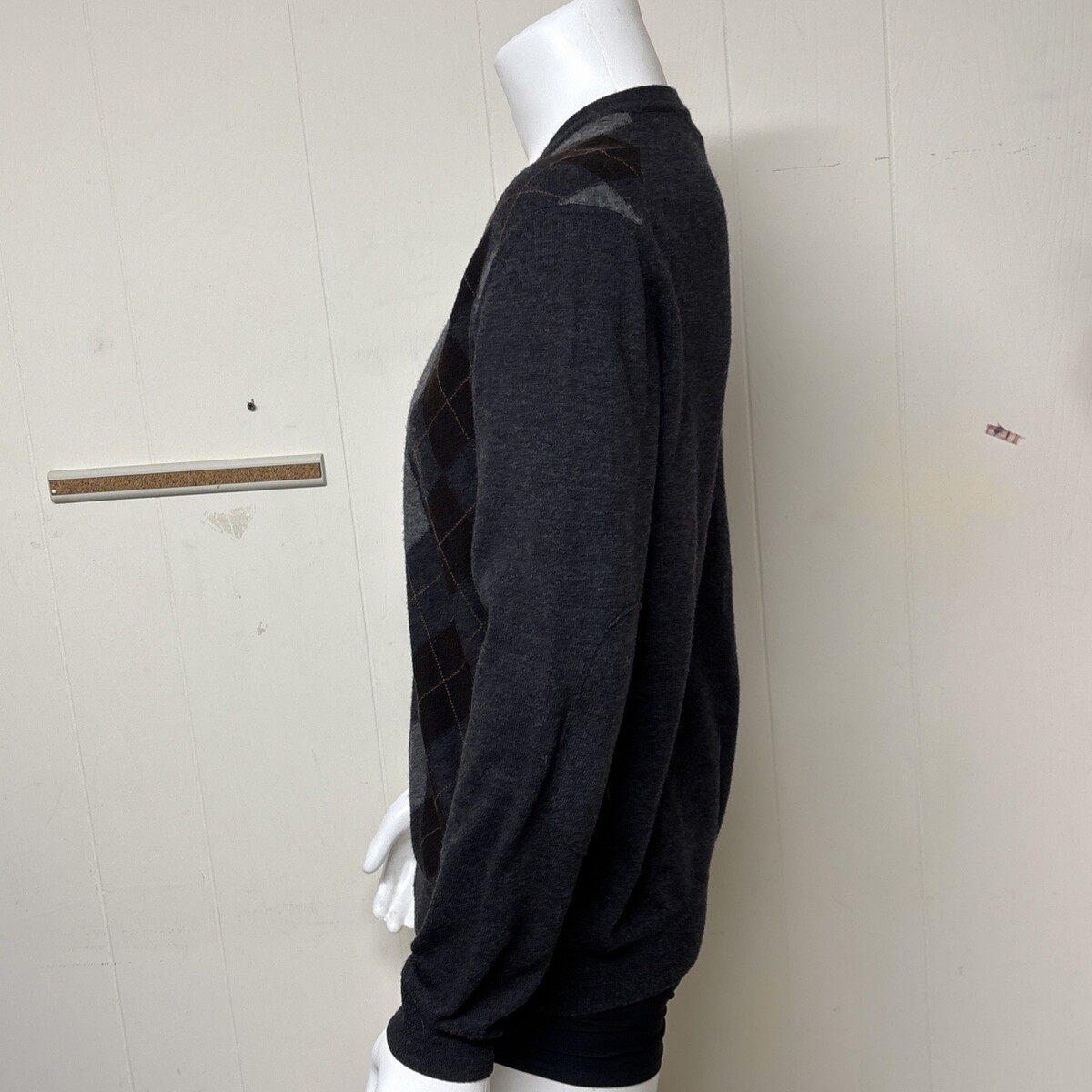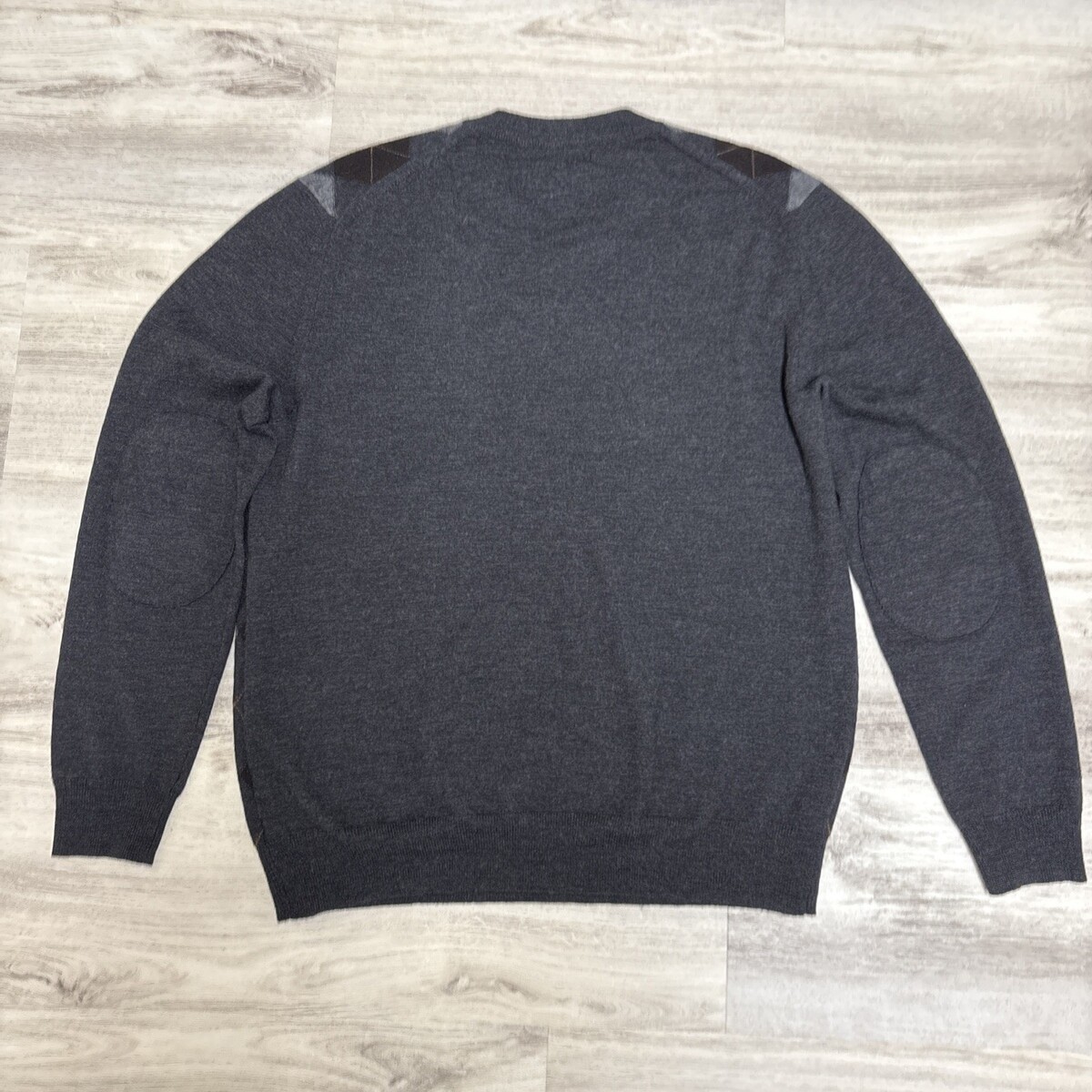 Banana Republic XFine Italy Merino Wool Argyle Sweater Mens L Gray Elbow Patches