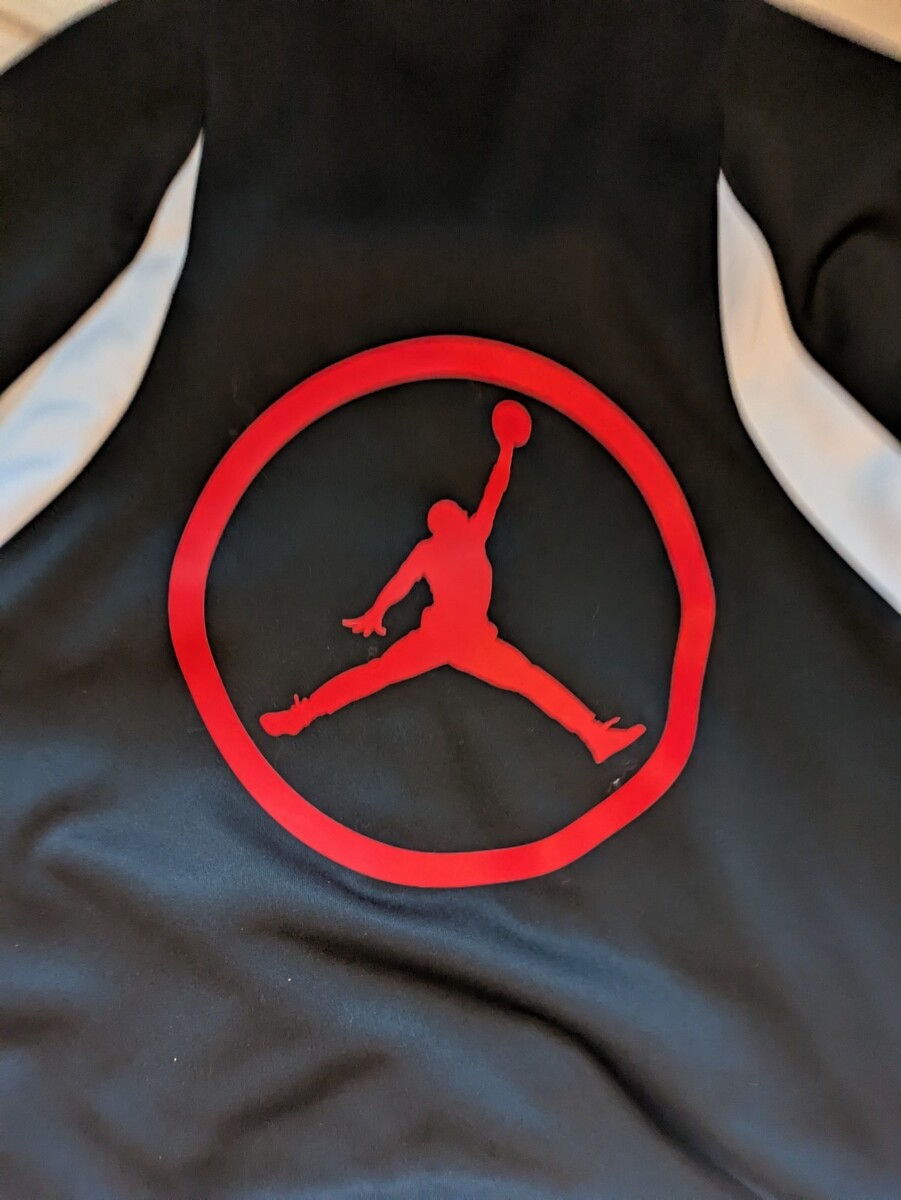 La veste zippee Jordan Jumpman Sport Track en noir et blanc est une option de vetement d'exterieur elegante et polyvalente pour hommes. Fabriquee en polyester, cette veste presente une coupe reguliere et le logo emblematique de la marque Jordan. Le style veste de survetement ajoute une touche sportive, parfaite pour les looks decontractes ou athletiques. Avec une taille Large, cette veste est un choix a la mode pour la garde-robe de tout homme, en particulier pour ceux qui apprecient la qualite et le style. Mesures : Epaule a manchette 27 pouces Aisselle a aisselle : 25 pouces Epaule a ourlet : 27 pouces