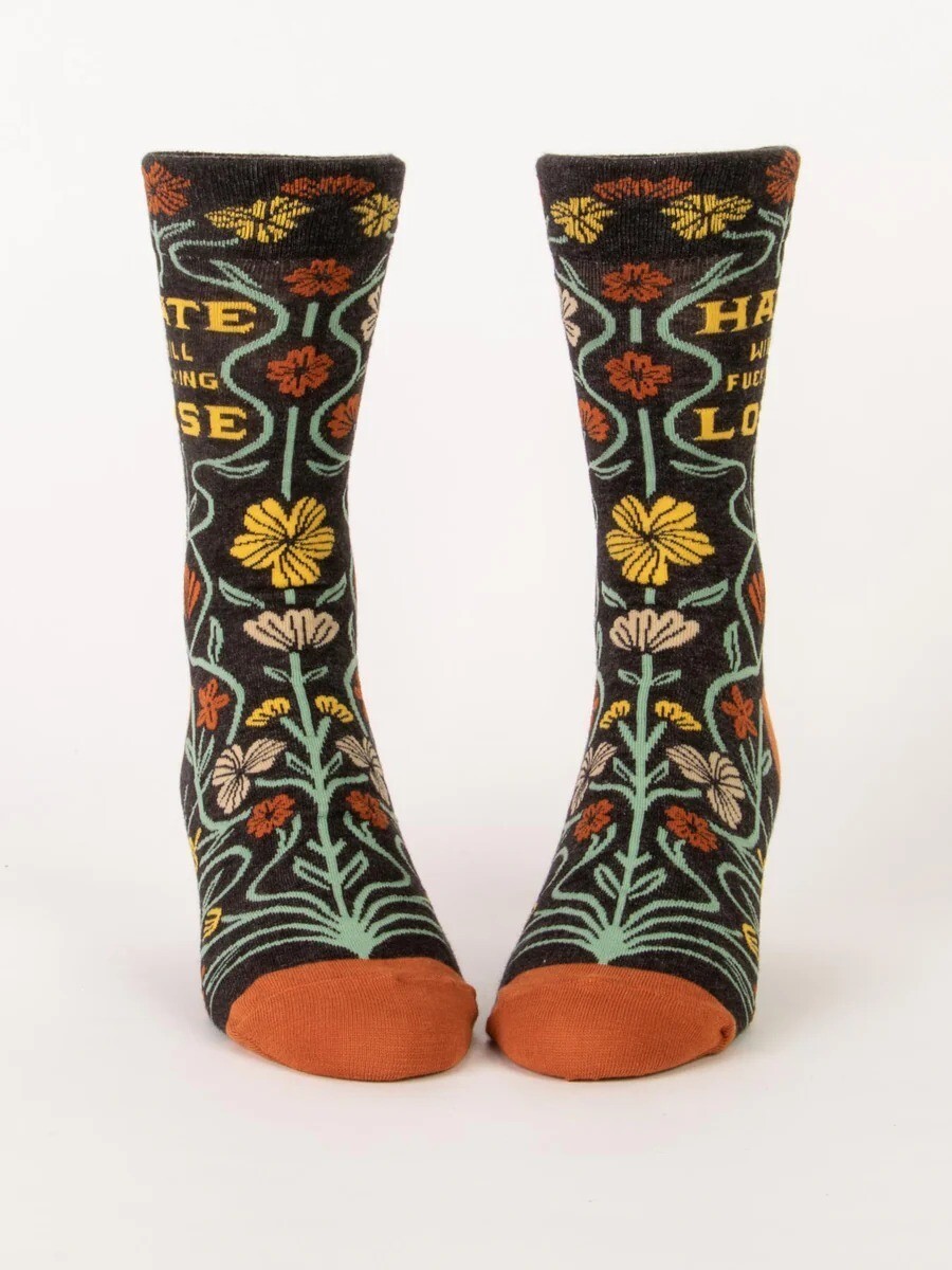 Blue Q Women's Crew Socks Hate will F**cking Lose socks size women size 5-10