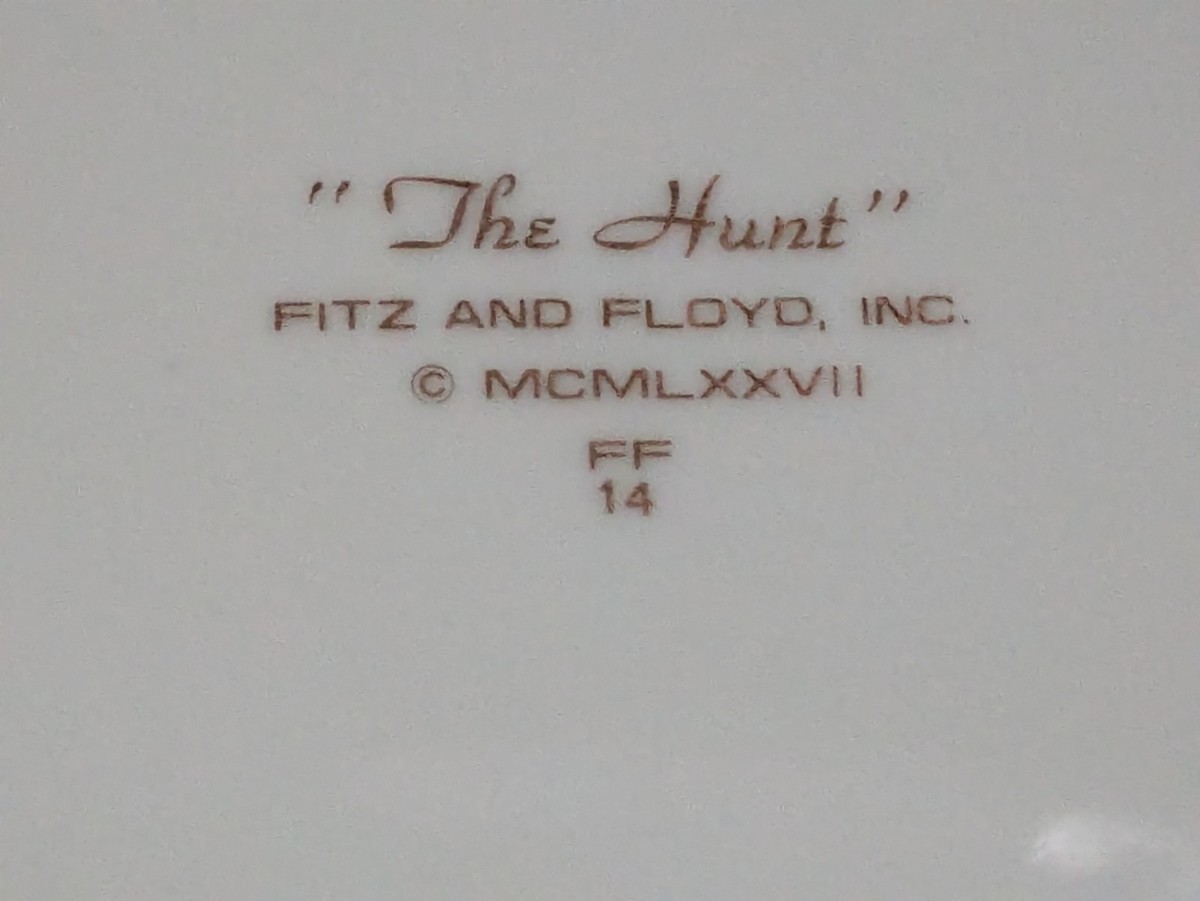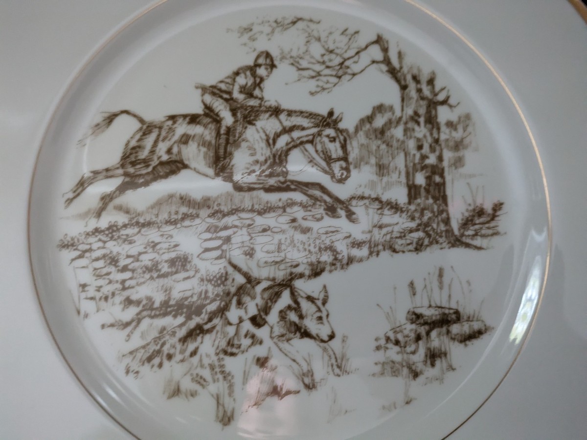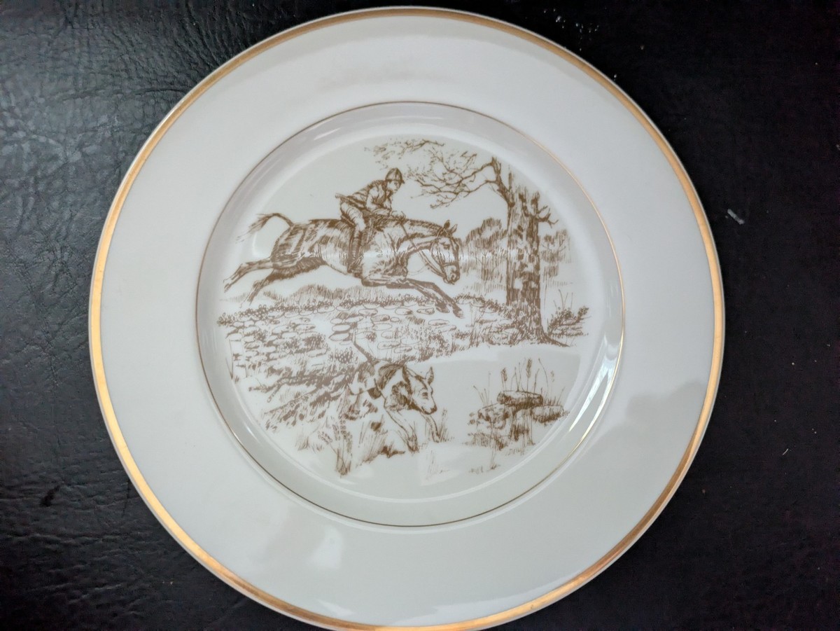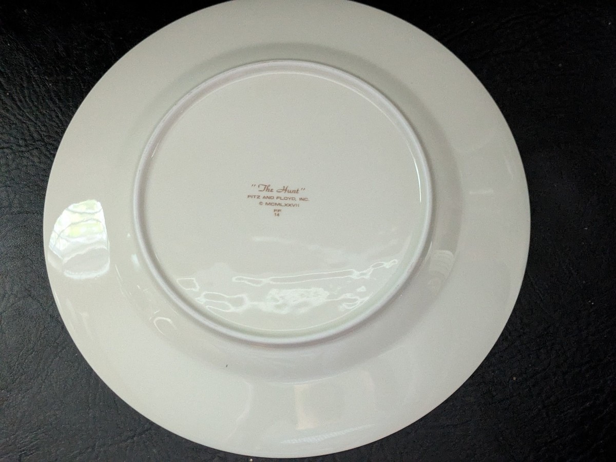 Fitz Floyd La Caza Plato Bordes Dorados Caballo Perros Valla FF14 10 1/4