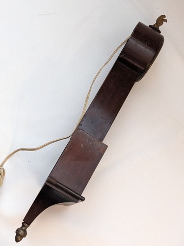 This Seth Thomas Banjo Mansfield Clock is a beautiful antique piece that will add style and sophistication to any space. The clock features a a mechanical movement that is powered by electricity. The clock is made of high-quality wood with a mahogany finish, which gives it a classic and elegant look. The clock is designed in a banjo shape and has a brown color that complements the antique style. The clock is from the time period 1920-1949, and it is a great collectible item for clock enthusiasts. The clock is in excellent working condition and will be a great addition to any collection or as a decoration piece. Missing metal decoration on each side.