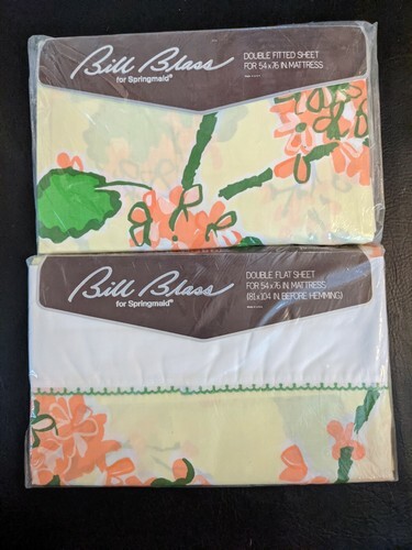 Vintage Bill Blass 4 Pc Double Bed Sheet Set Springmaid Pink Yellow Floral NEW