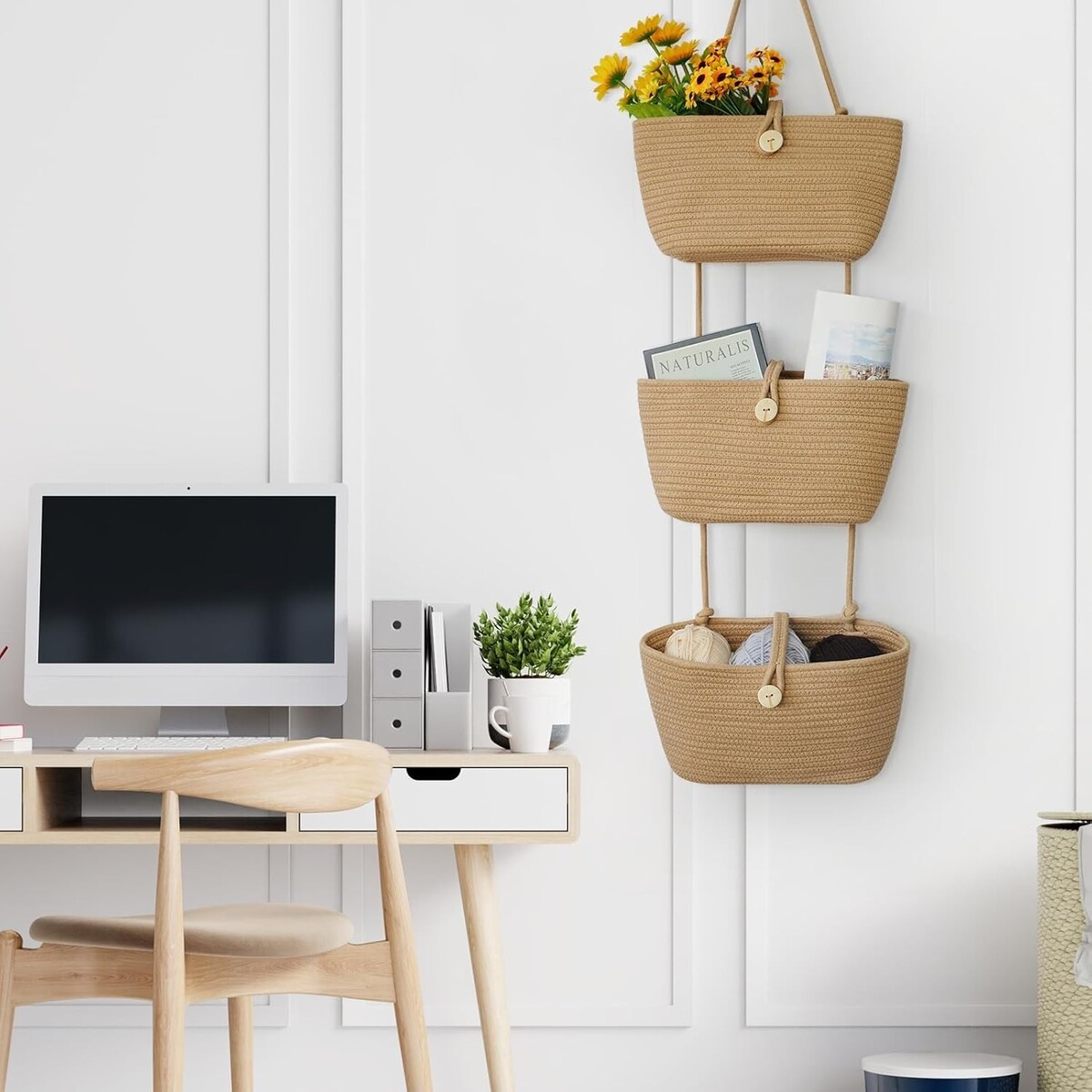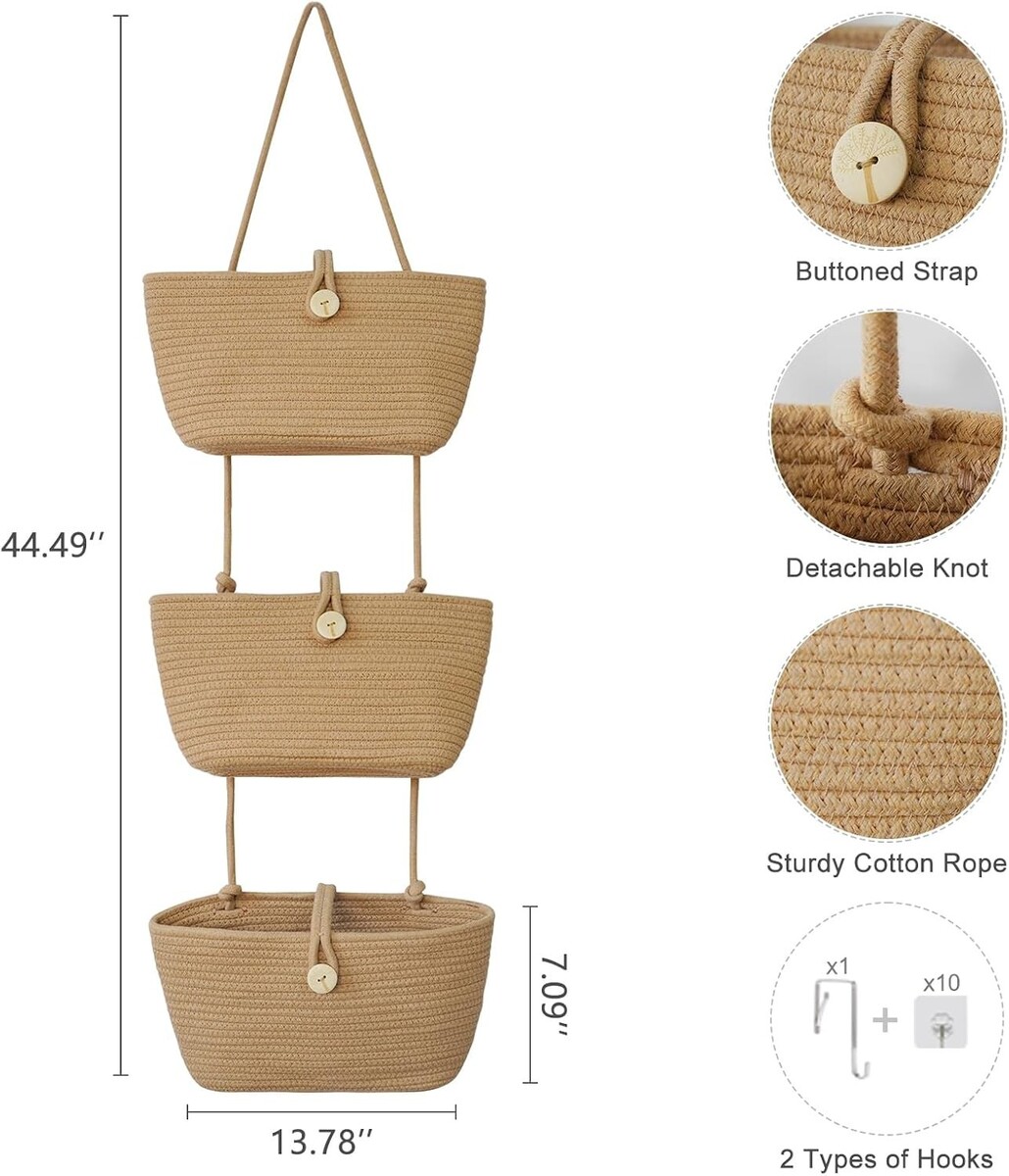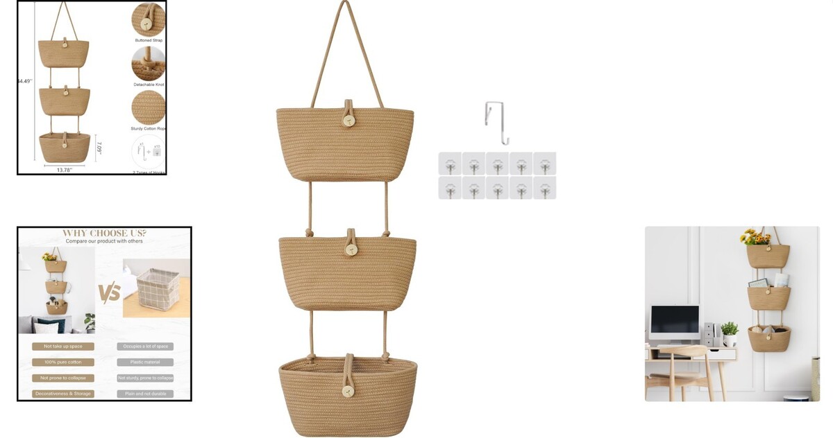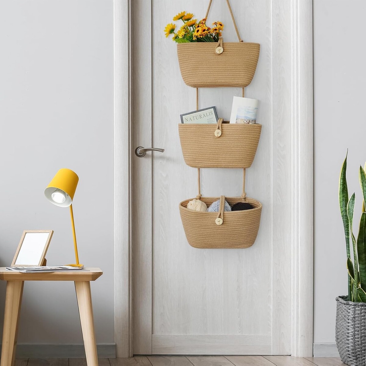 Chic Decorative Cotton Storage with Hooks - Over-the-Door Hanging Baskets 44.5''