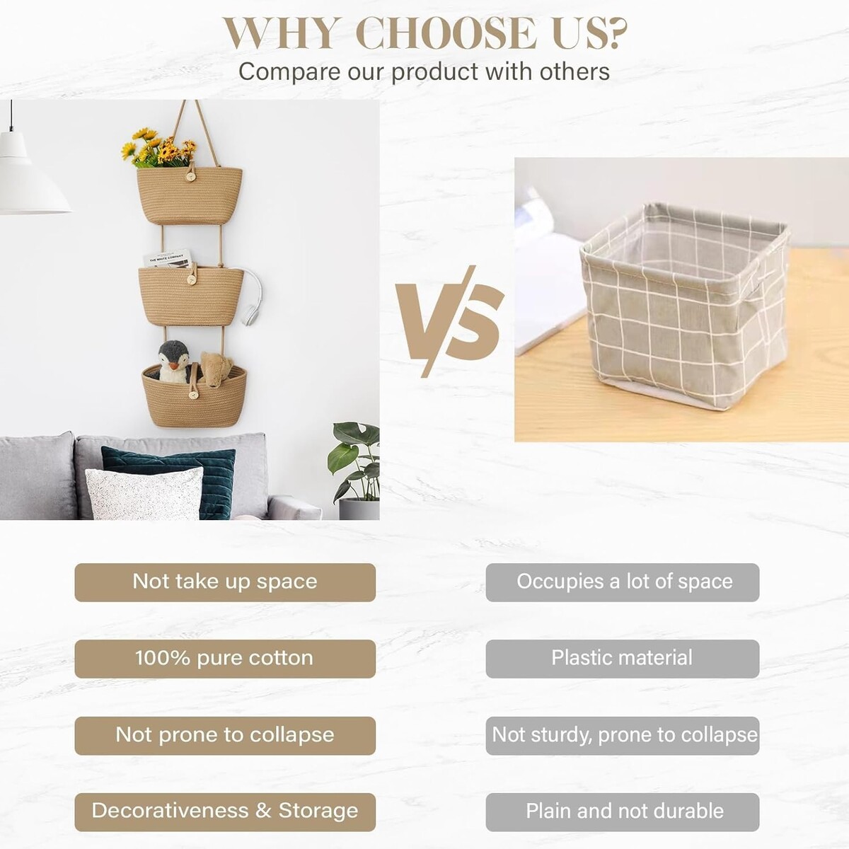 Transform your space into an organized oasis with our Chic Decorative Cotton Storage. Made from luxurious, natural cotton, these hanging baskets provide a stylish solution for all your storage needs. Enjoy the versatility that allows you to use these baskets in any room of your home, while adding a touch of elegance to your decor.