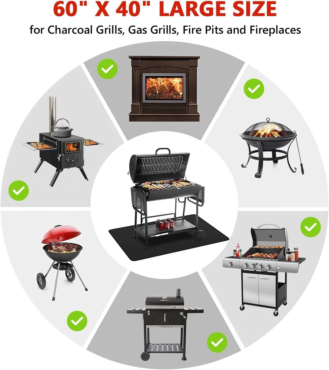 Generous Size: Measuring 60x40 inches, this grill mat effectively protects the area beneath your grill from high temperatures and potential fire hazards, while effortlessly collecting splatters and food stains. Keep the environment pristine and focus on enjoying your outdoor gatherings.