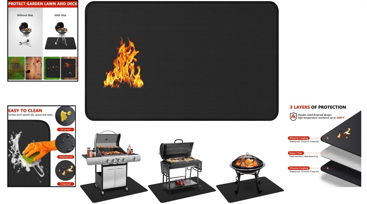 Superior Heat Resistance: Crafted from fiberglass and coated with heat-resistant silicone on both sides, this mat withstands temperatures up to an astounding 2000F, ensuring protection from hot embers and grease that could harm your deck or lawn.