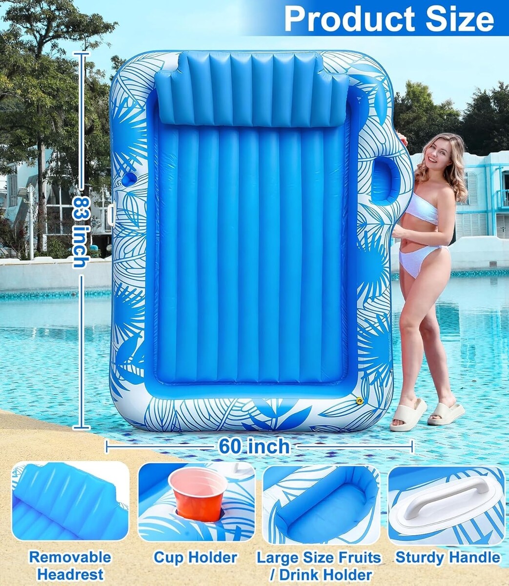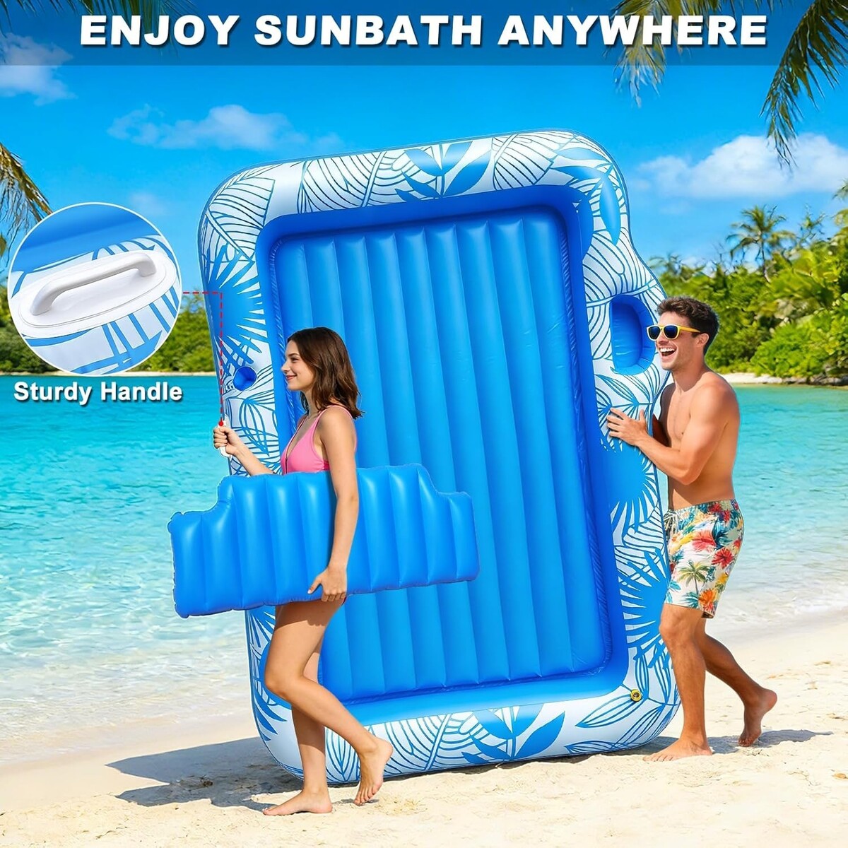 This inflatable lounger is not just an accessory; it?s an experience. Perfect for lazy afternoons on the beach, by the pool, or in your backyard, you can enjoy splashes of fun with friends or take some much-needed time for yourself. The built-in cooler keeps your favorite drinks and fruits close, while the ribbed cushion base provides comfort unparalleled by traditional loungers.