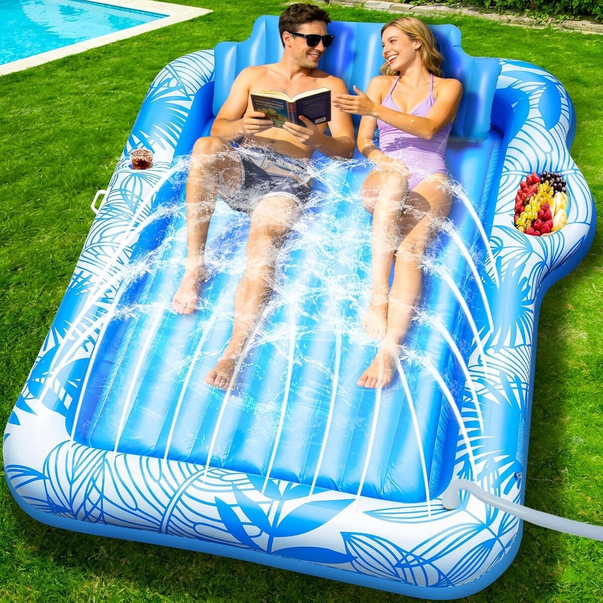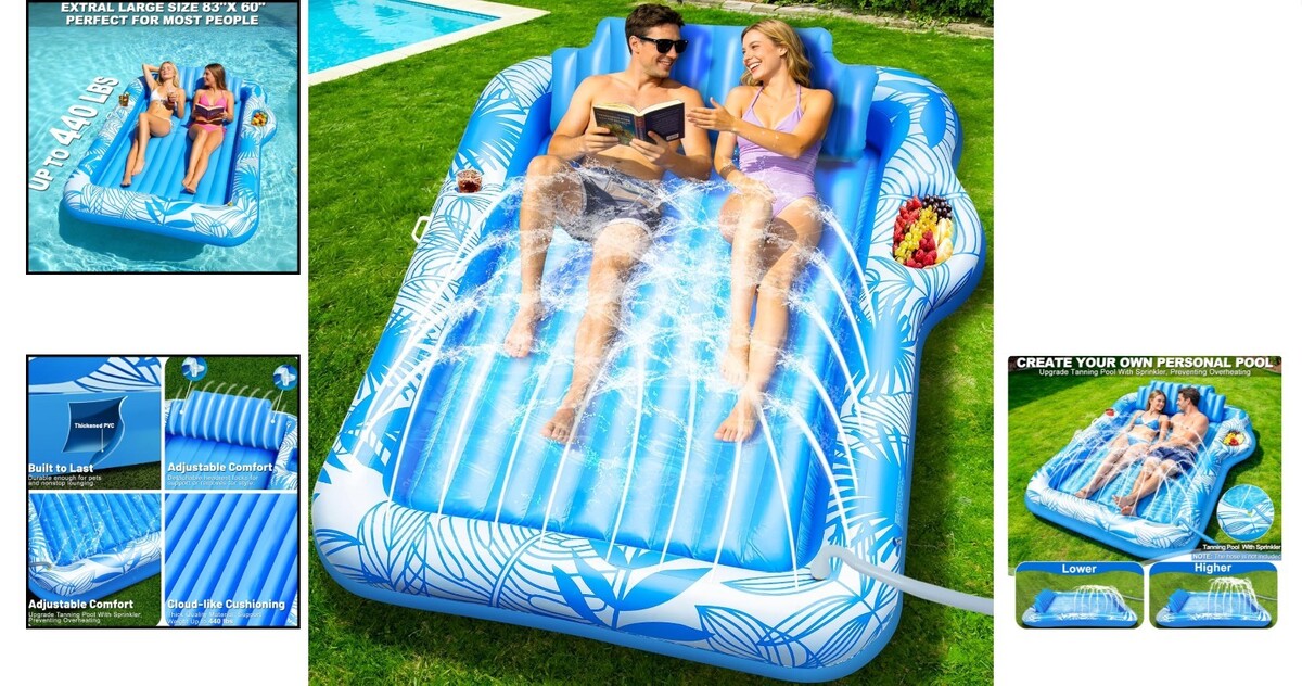 Oversized 83" x 60" Inflatable Lounger with Sprinkler & Cozy Backrest - For Two