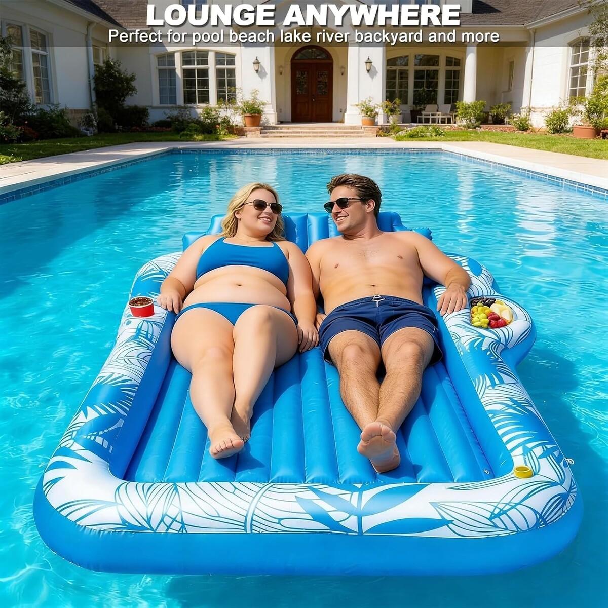Experience summer like never before with our upgraded oversized inflatable lounger, designed for ultimate comfort and relaxation. This extraordinary lounger not only provides a spacious area for you and a friend or family member to enjoy but also features a unique sprinkler function to keep you cool while you bask in the sun.