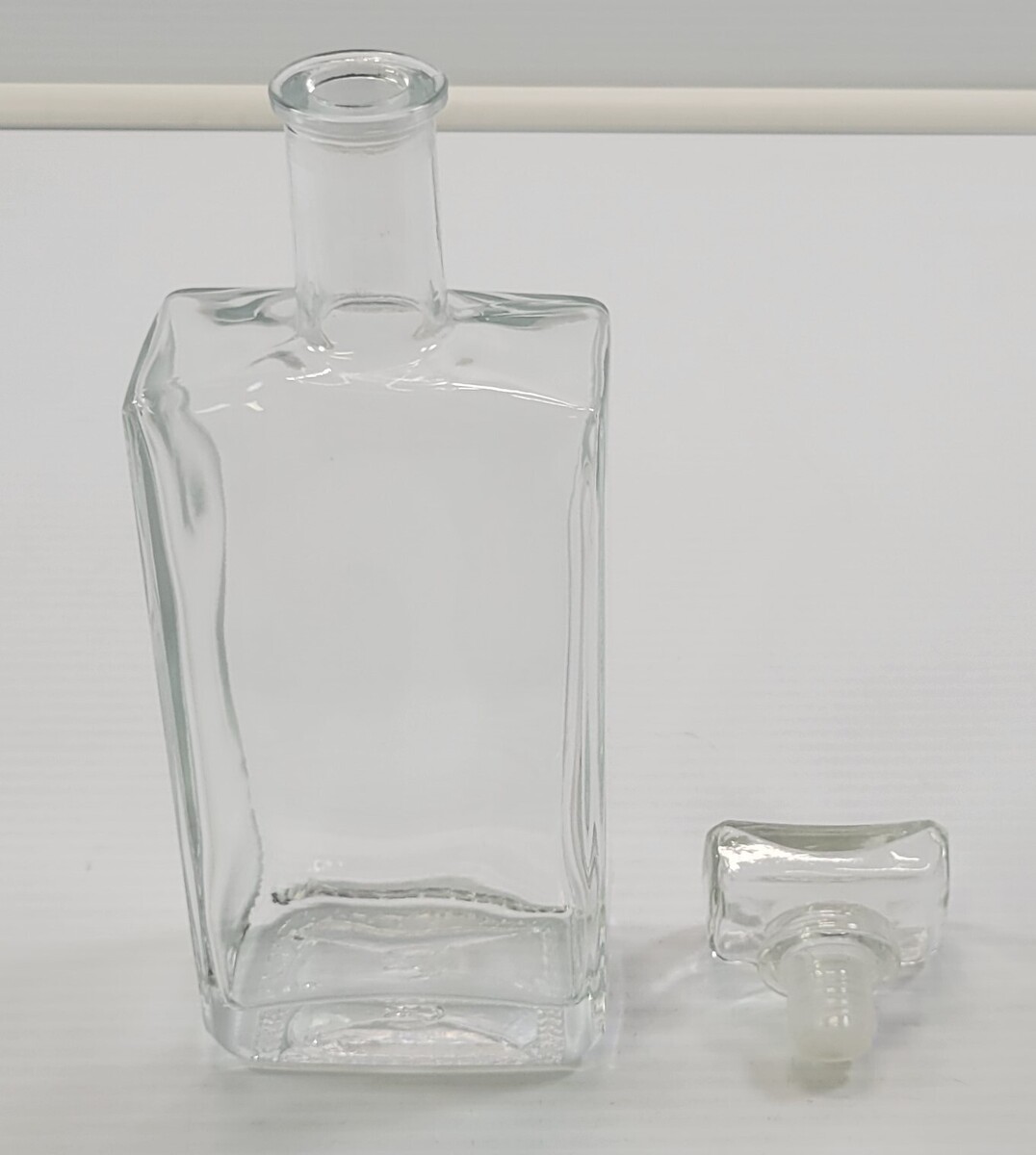 PV) Rectangular Glass Liquor Bottle Decanter With Stopper 10"