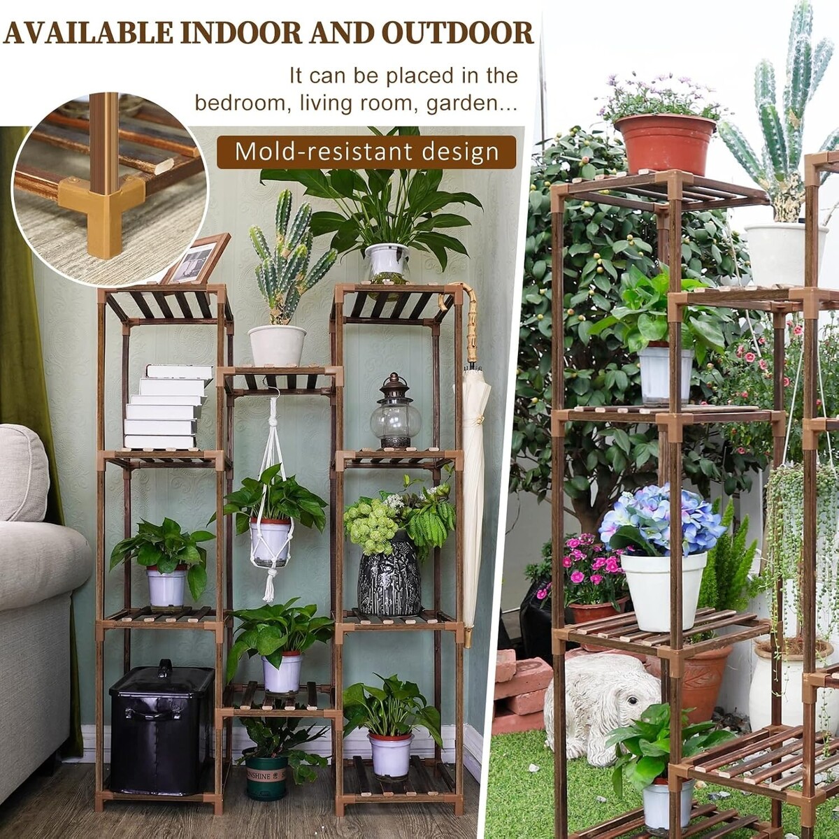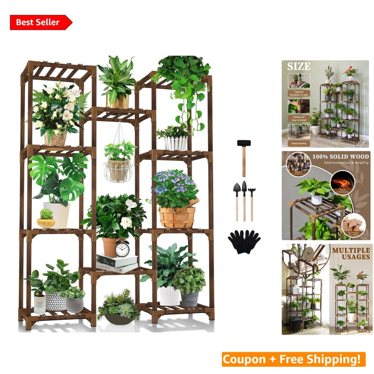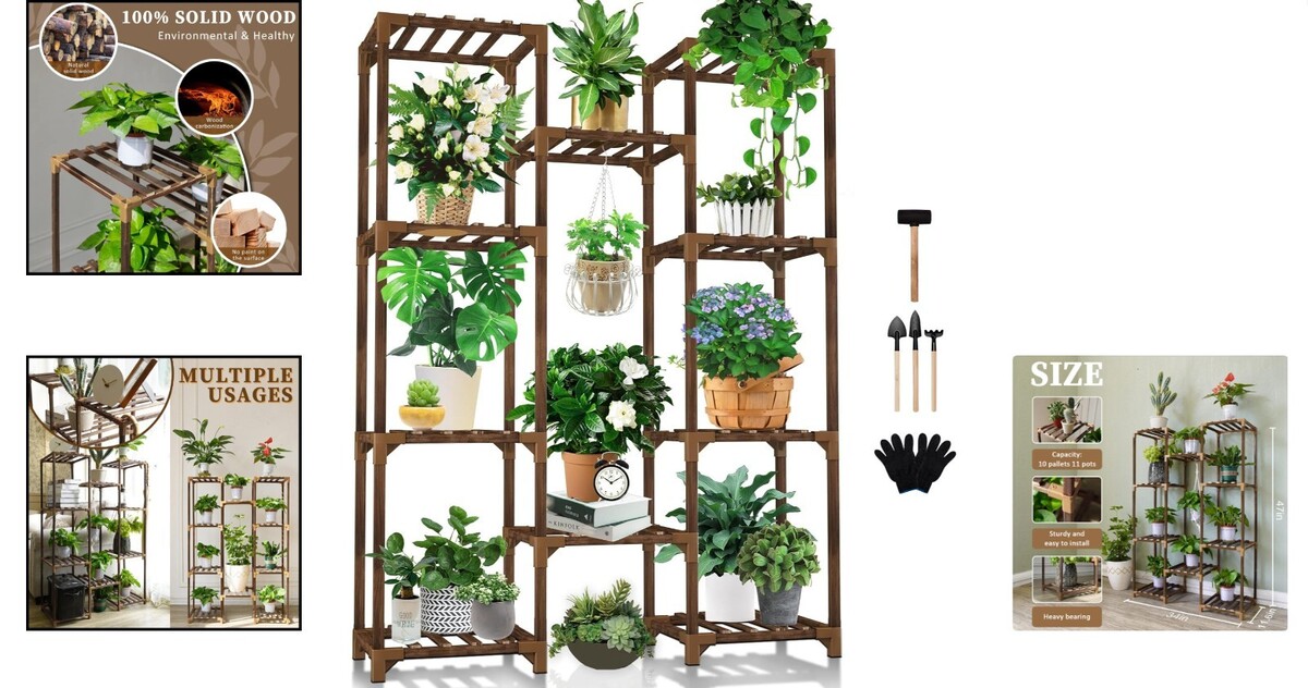 Space-Saving Wooden Plant Shelf - Holds 11 Pots, 150 lbs Weight Capacity