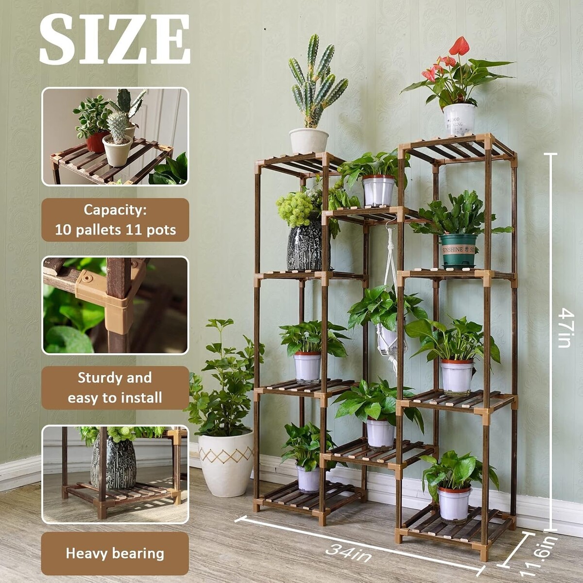 Designed with both functionality and aesthetics in mind, this wooden plant shelf is the perfect way to showcase your beautiful plant collection. With 11 pots capacity, sturdy construction, and versatile usage, it can seamlessly fit into any space while providing both style and practicality. Create your own indoor garden or organize your outdoor area with this elegant addition.
