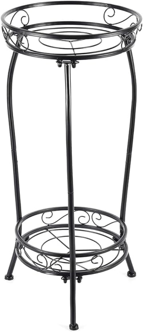 2-Tier Black Iron Plant Shelf - Lightweight, Rust-Resistant, Heavy-Duty Design