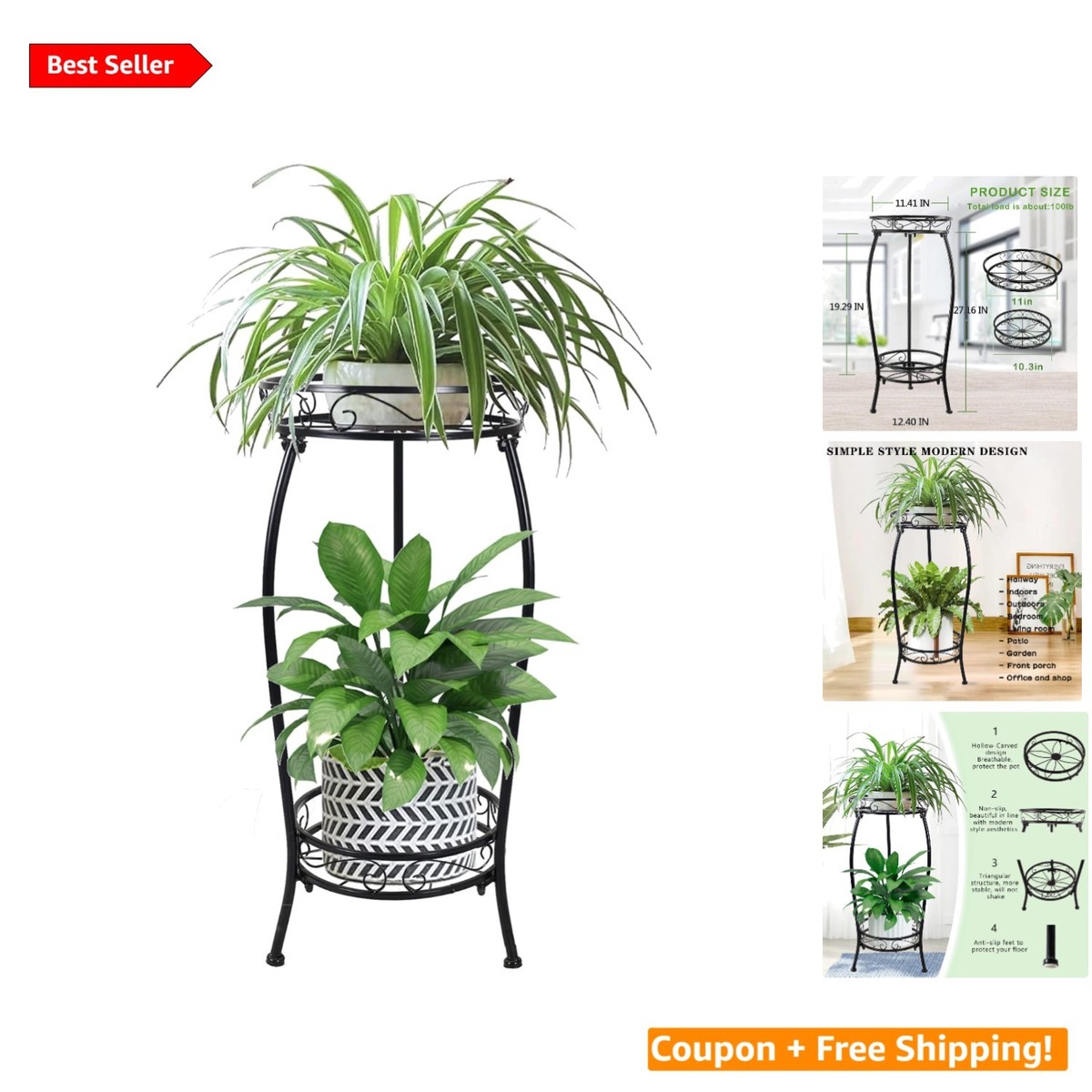 If you're looking for a stylish and functional way to showcase your beloved plants, our Versatile Black Iron Plant Stand is the perfect solution. With its 2-tier design and elegant appearance, it complements any decor while being incredibly sturdy and stable.