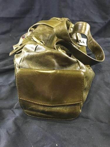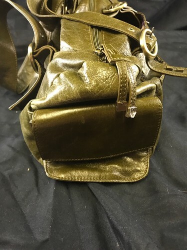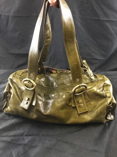 Helen Welsh Green Glazed Leather Satchel Handbag Purse KG F2.