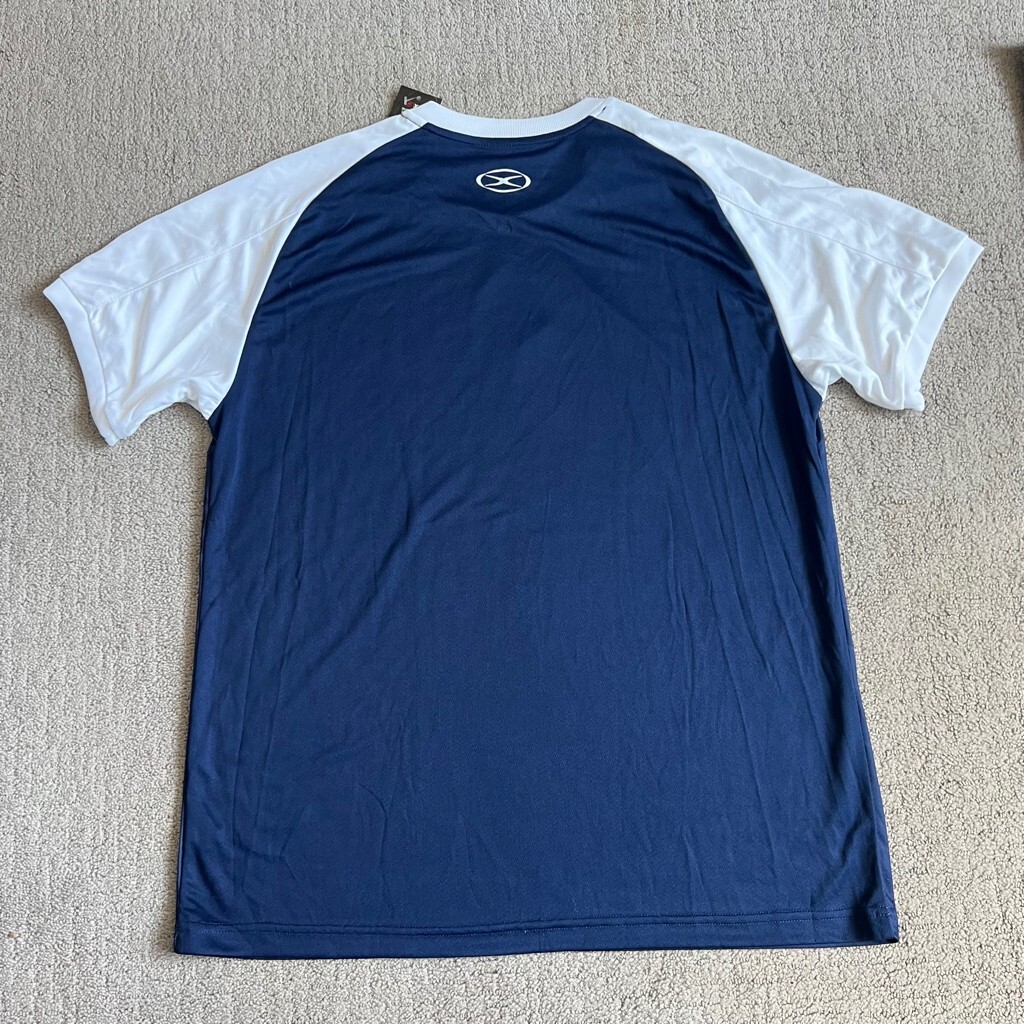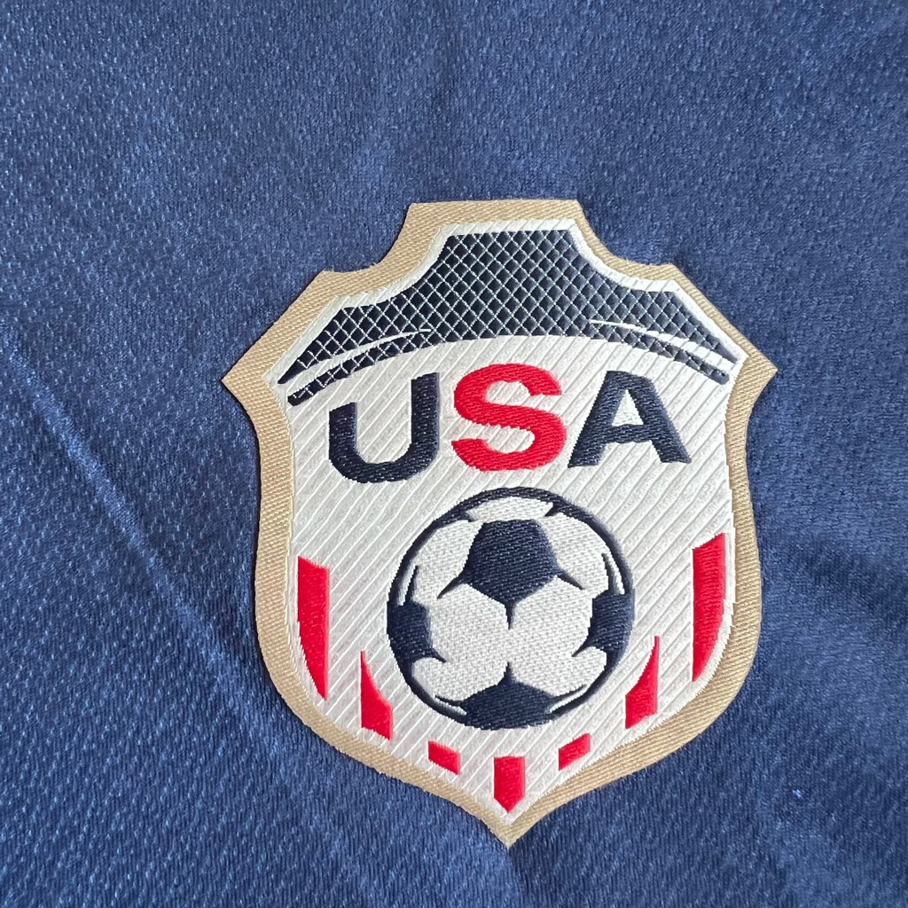Showcase your national pride with the Xara Men?s USA National Team Soccer Jersey, a perfect blend of style and patriotic spirit. Crafted in a size large, this eye-catching jersey stands out with its bold red, white, and blue colors. The deep navy base of the shirt is accented with dynamic red stripes and a white upper chest and sleeve detail. A striking USA team crest adorns the left side of the chest further emphasizing the national colors. This premium quality soccer kit also features a new-with-tags (NWT) guarantee of freshness and authenticity. The lightweight material ensures breathability and comfort whether you're cheering from the stands or playing on the field. Embrace the spirit of American soccer and make this jersey a proud addition to your collection.