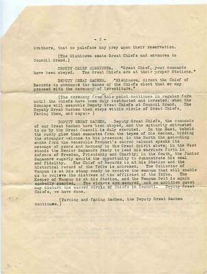 A 2 page guide, has been folded. For Deputy Great Sachems Form of Introduction Conclusion Ceremony Raising Tribal Chiefs. History , procedures and information and the ceremony.