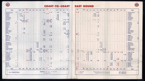 NORTHWEST ORIENT AIRLINES flight schedule COAST- to -COAST & Alaska FEB. 1, 1947