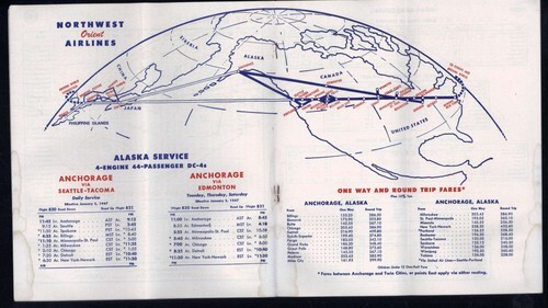 NORTHWEST ORIENT AIRLINES flight schedule COAST- to -COAST Alaska FEB. 1, 1947