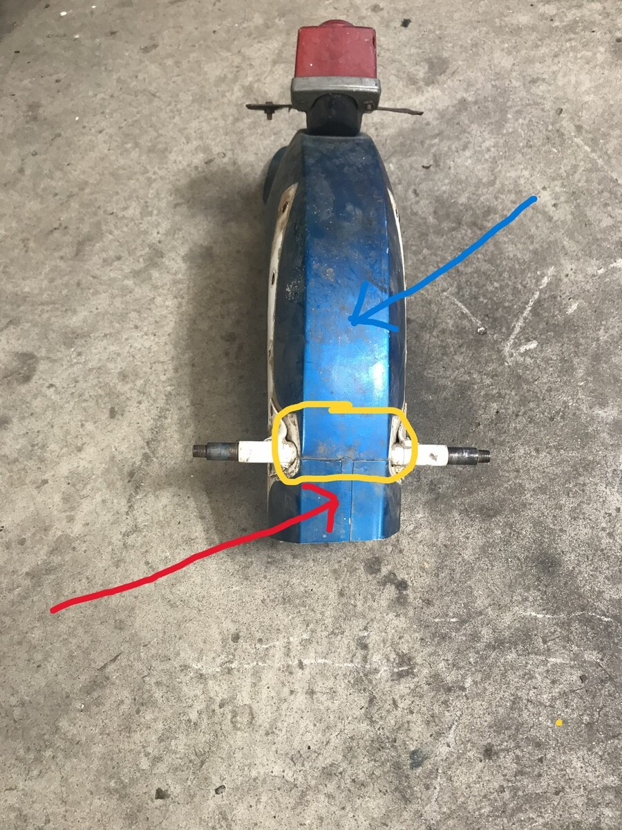 Honda Dream CA72/77 Rear Fender with License Plate Bracket Tail Light. The motorcycle it was removed from had a damaged frame. When removing the fender the rear of the frame was cut off leaving part of the frame still attached. to the fender. ( see picture). Red arrow points to cut portion of the frame. Blue arrow points to the fender Yellow circles the joint between the two.The fender is undamaged and complete. The license plate bracket and tail light are included. The lens of the tail light is slightly damaged but usable.