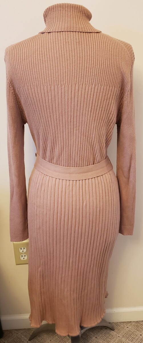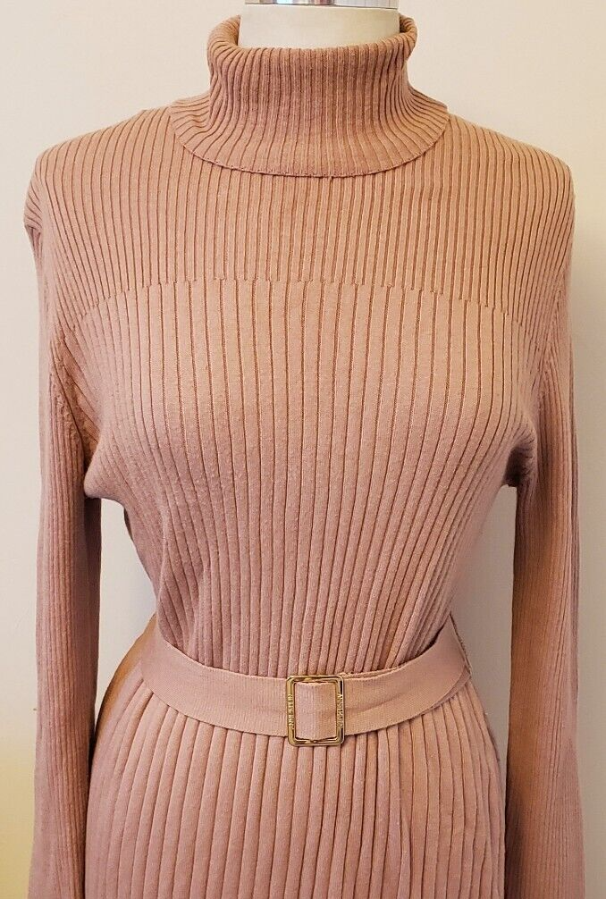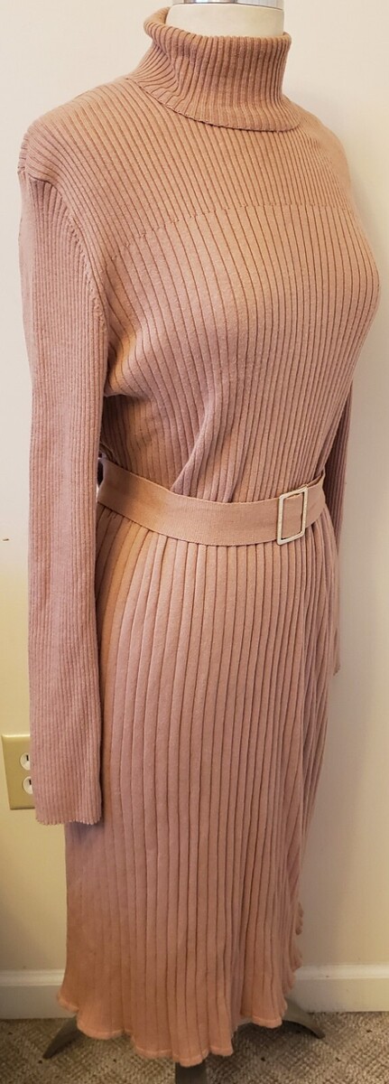 Belted Long Sleeve Ribbed Knit Turtleneck Dress