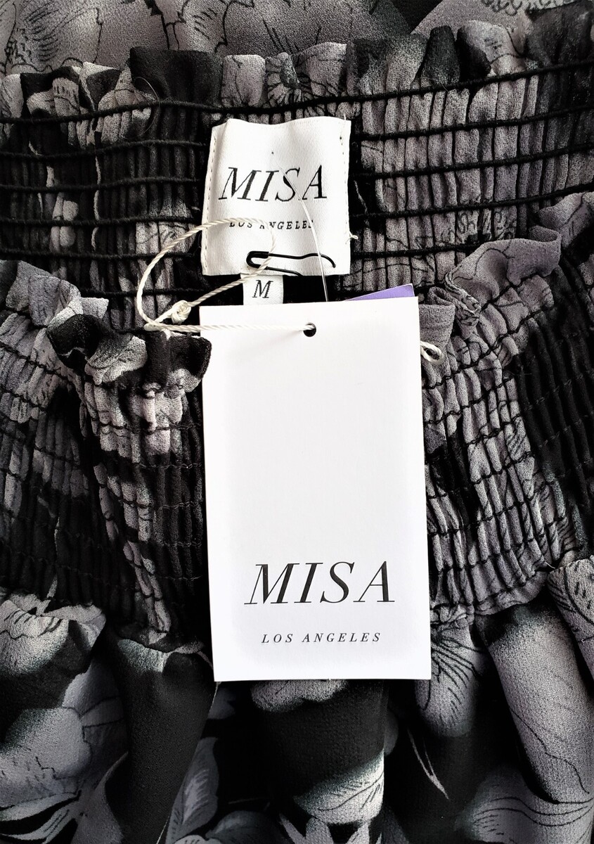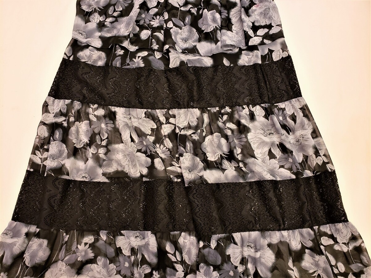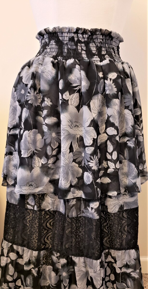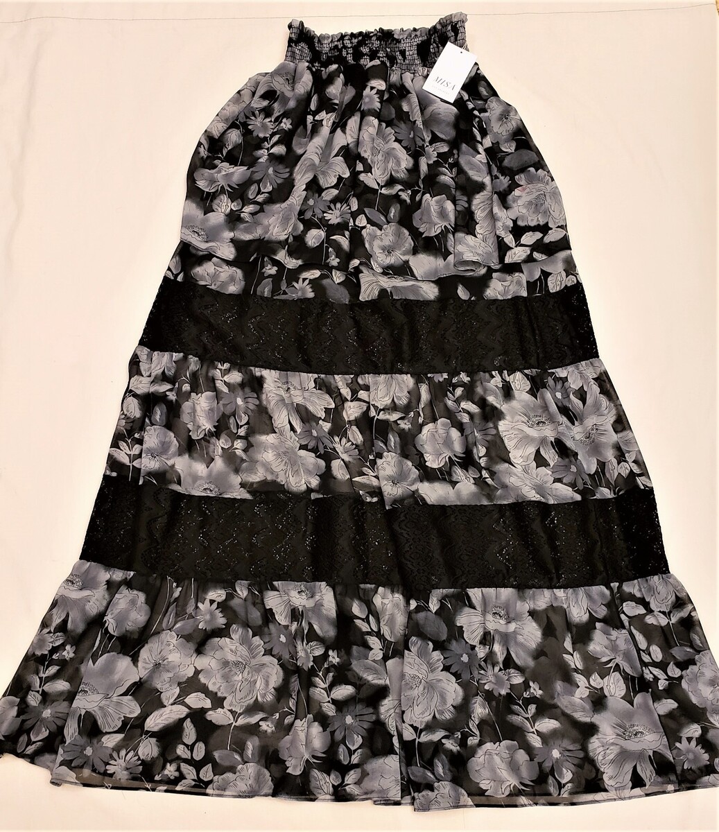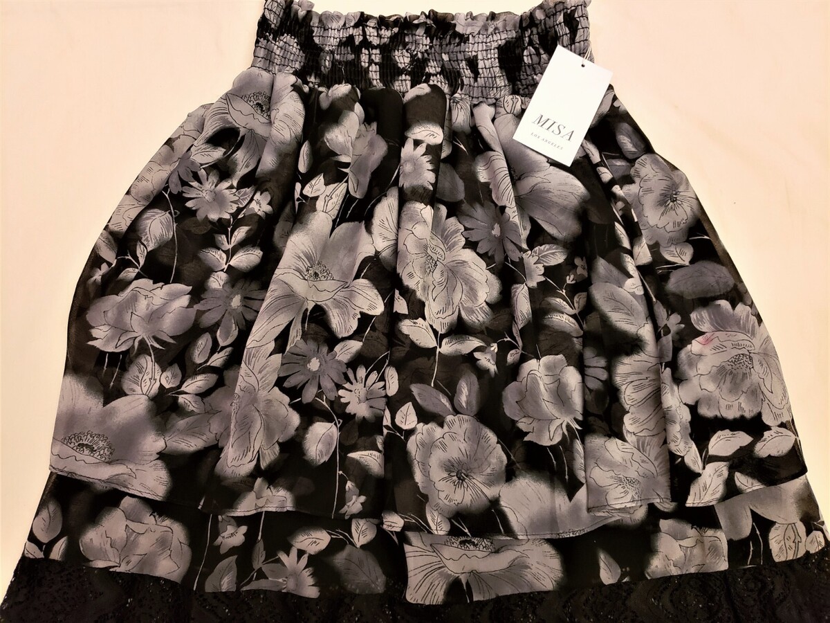 MISA Los Angeles Floral Ruffled Hem Maxi Skirt Size-M Black