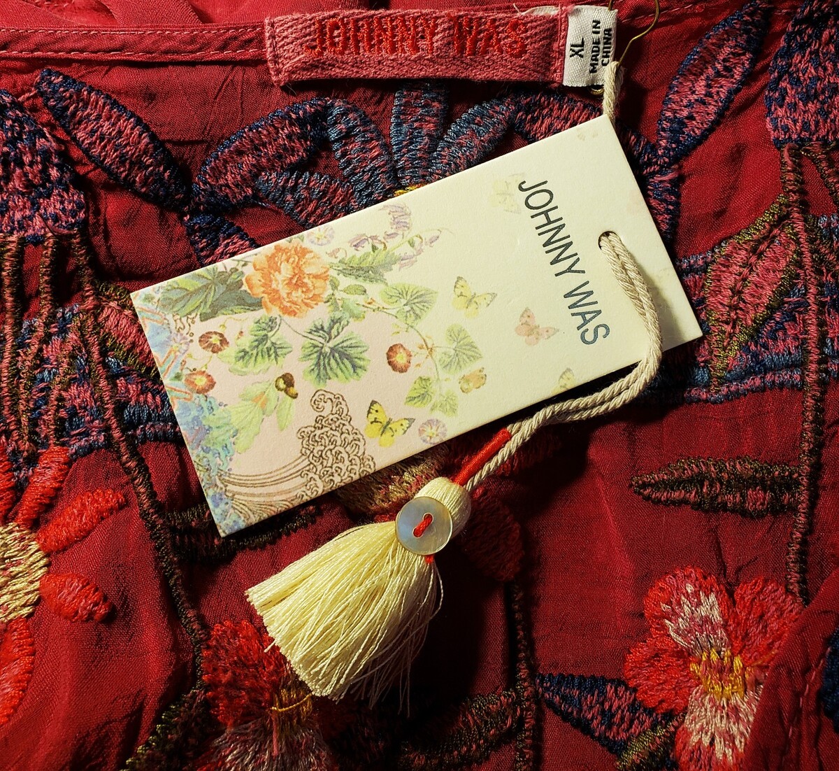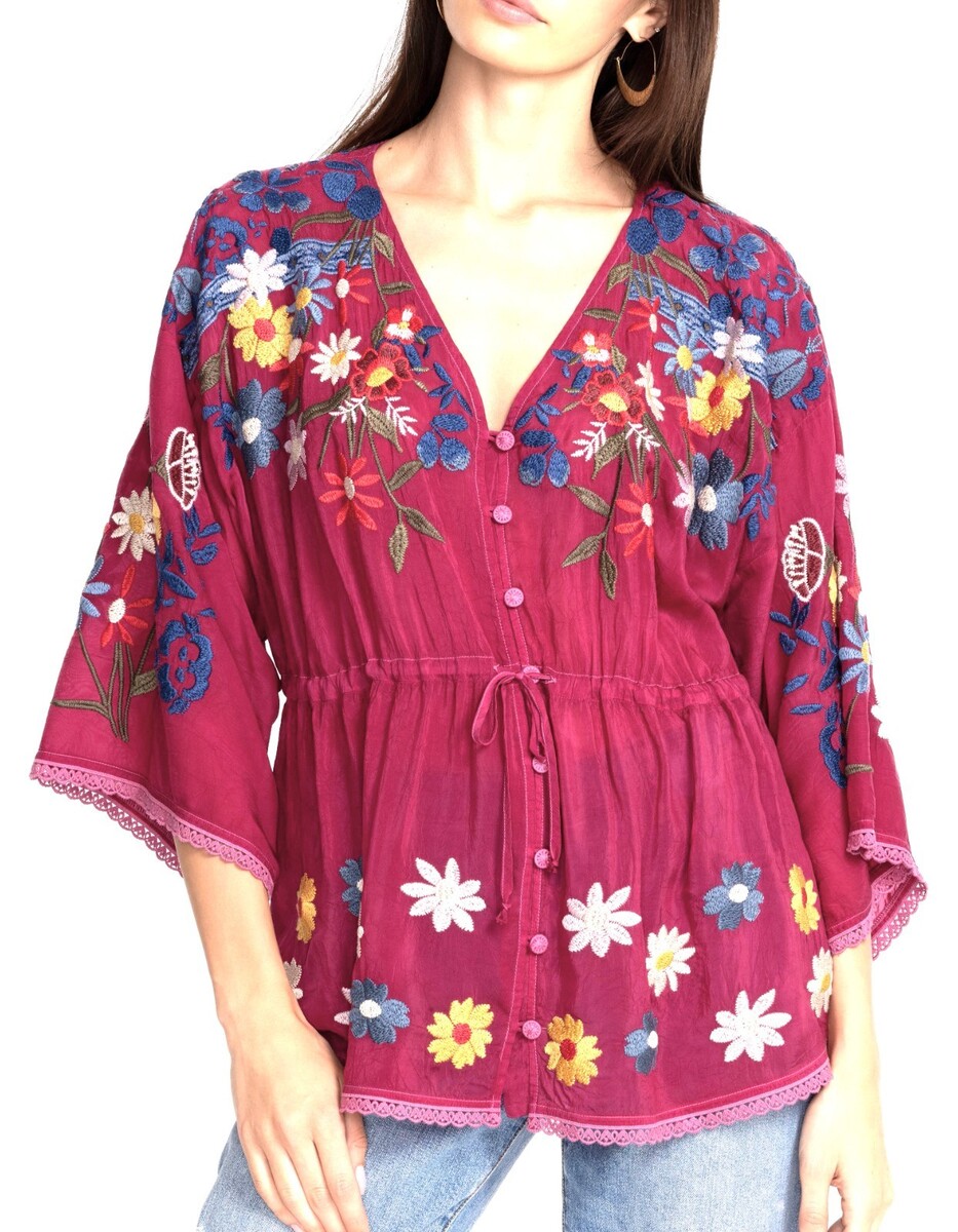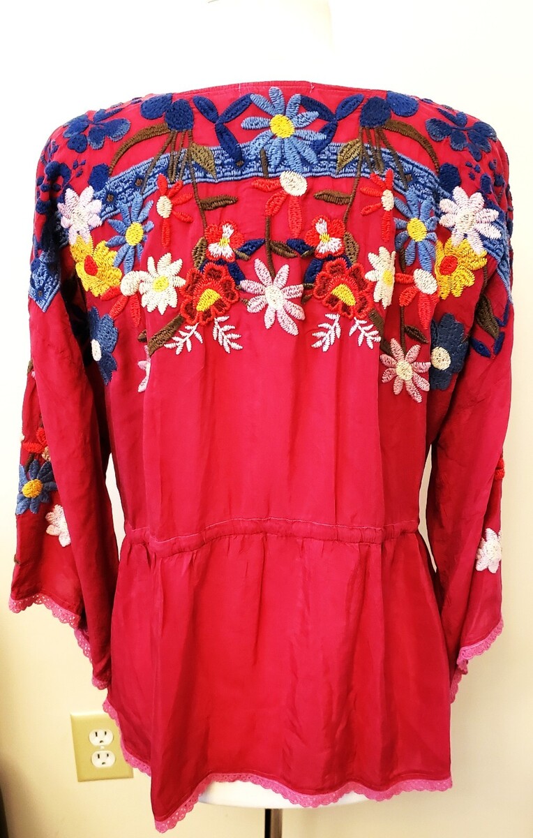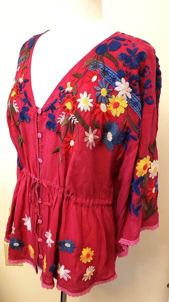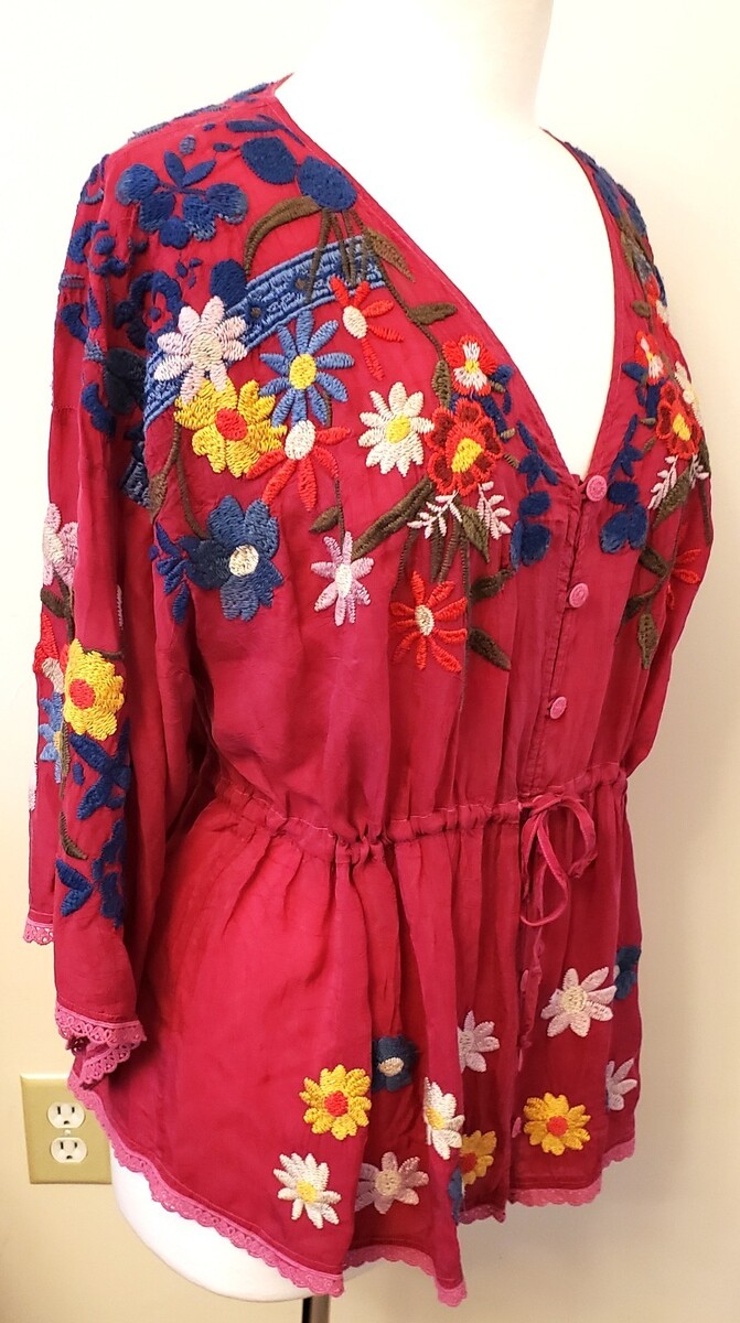 Johnny Was Multicolor Floral Embroidered Blouse Size-XL Rumba Red