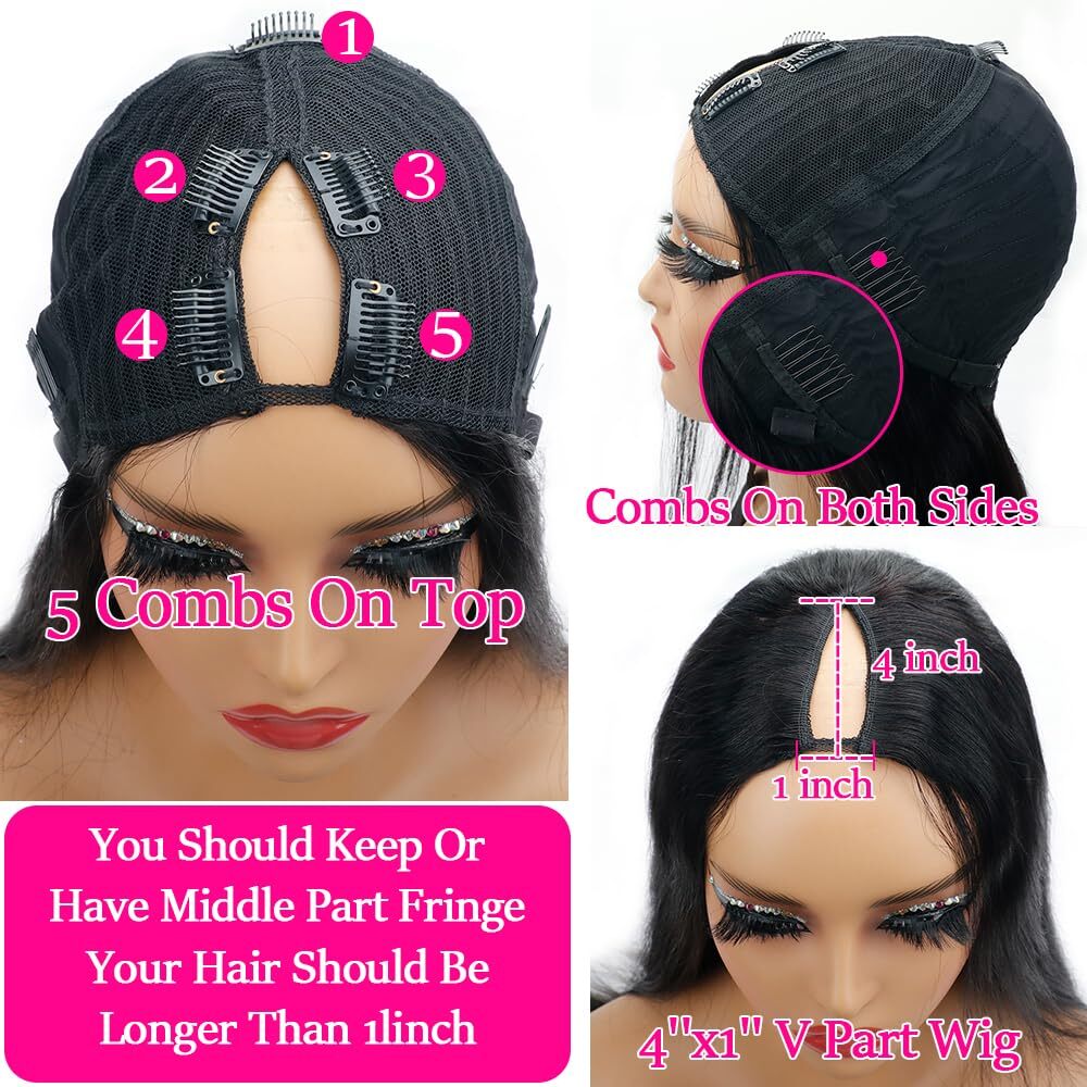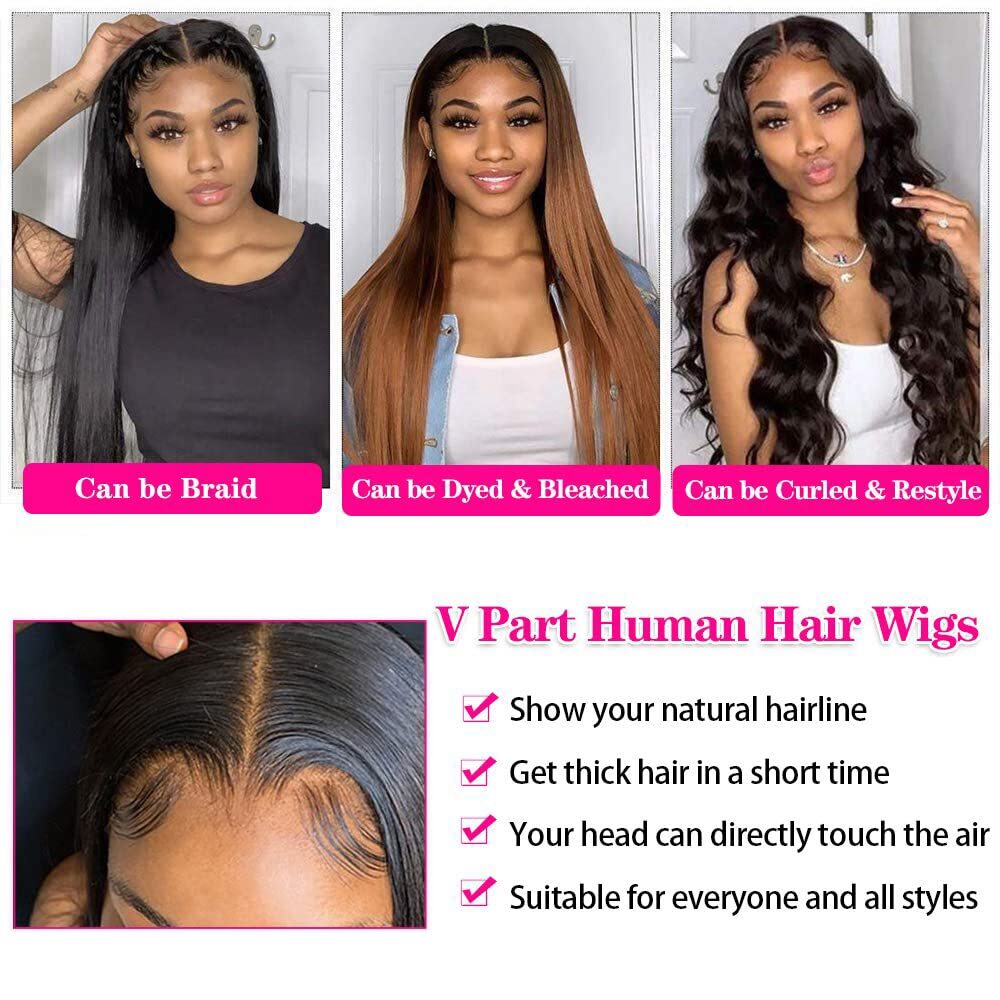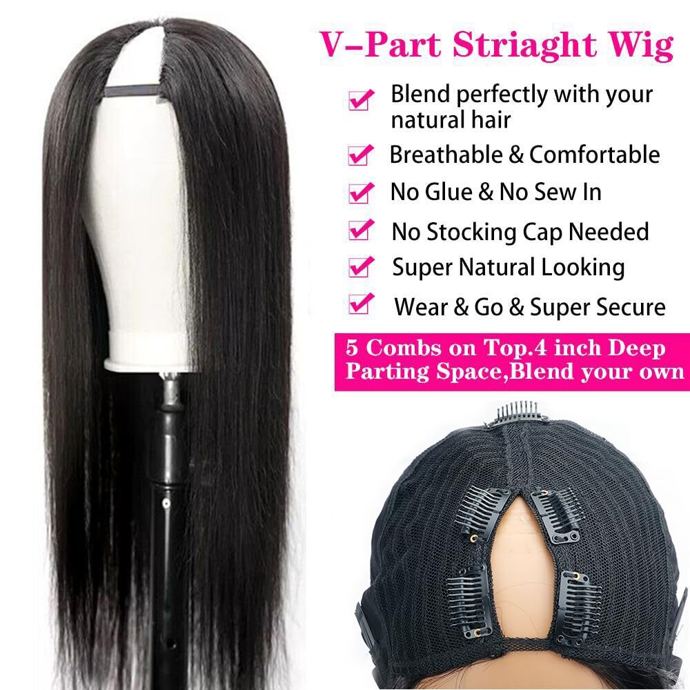 Upgrade U Part Wig Human Hair : Straight V Part Wigs Human Hair, No Glue No Leave Out,Can Be Dyed, Permed, Professional bleach,V Part Human Hair Wig : Cut from Girl Head Directly, Soft and Healthy, No shedding, No Tangle, New Upgrade, Straight silky,180% Density, Natural Color,Straight Human Hair Hair Wigs Detail : 1"x4" V Shape Glueless Wigs, Your Should Keep or Have Middle Part Fringe, Sevaral Adjustment Straps and Clips on Top, Back and Both Sides, and You Can Adjust the Elastic Strap to Make it Fit Your Head Size,v part wig human hair Advantage : Without all the Glue and Sewing, Easy to Adjust,Save Time,You can wear it on any occasion, such as dates, holidays, Christmas and more, giving you a more natural and beautiful look,Customer First : Our aim is putting customer at first. If you have any questions and suggestions, Please feel free to contact us