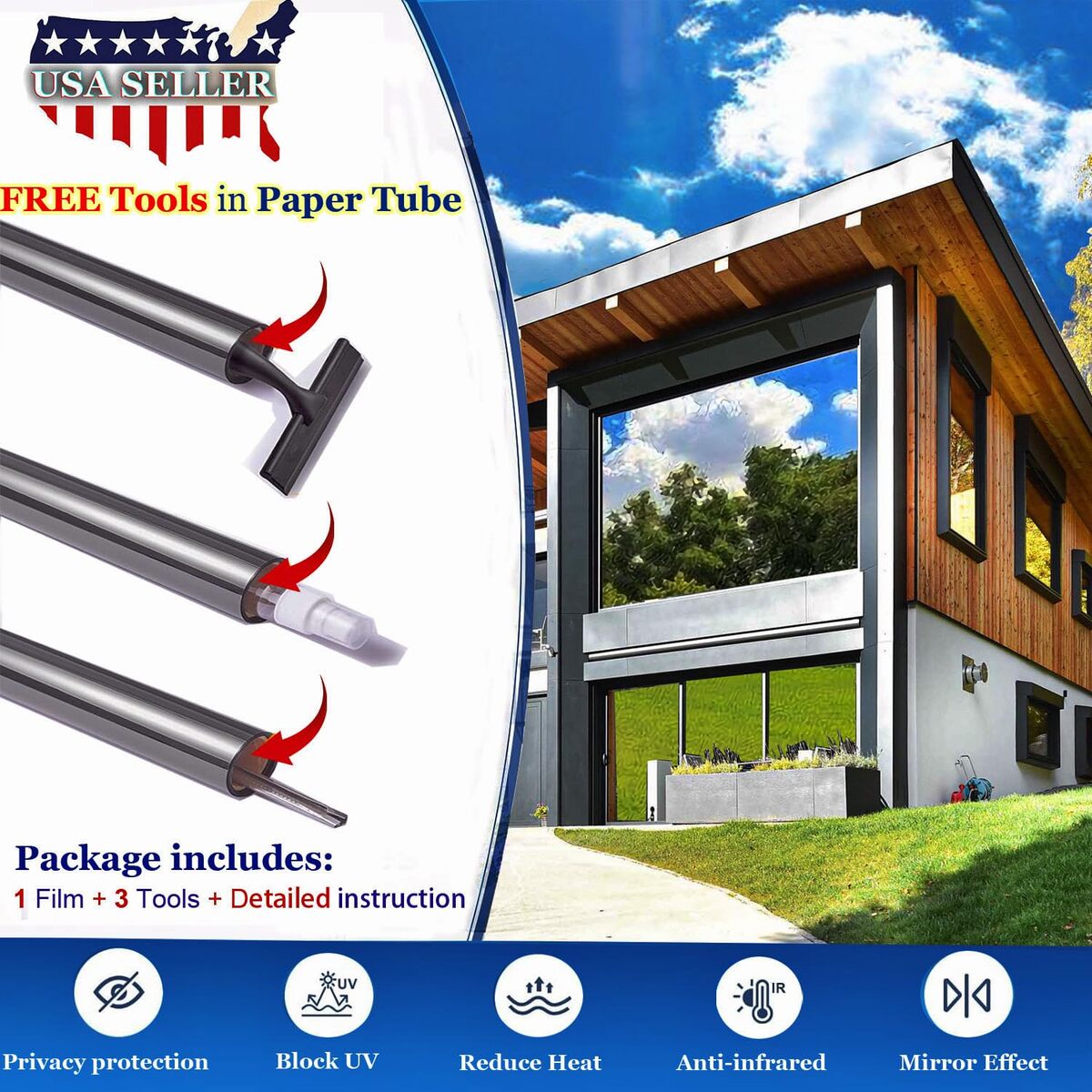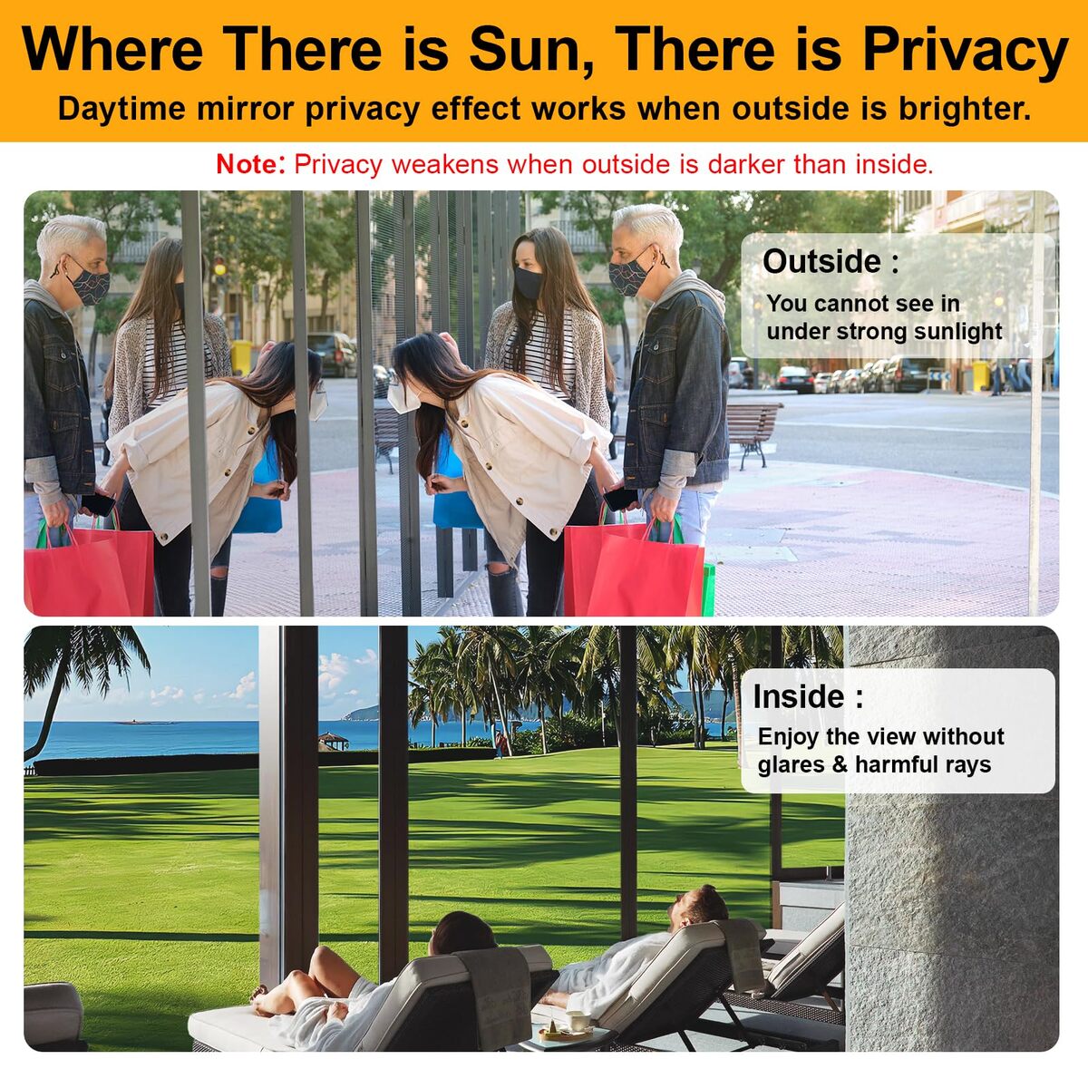 Window Privacy Film See Out Not in, One Way Privacy Window Film, Removable Windo
