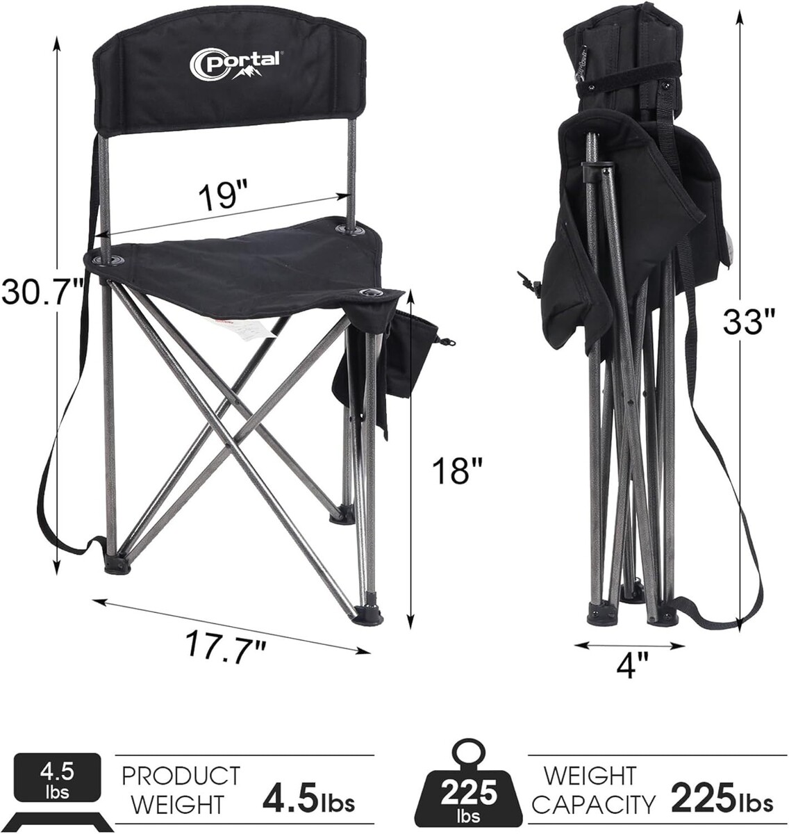 Extra Large Quick Folding Tripod Stool with Backrest | Comfortable Camping Chair