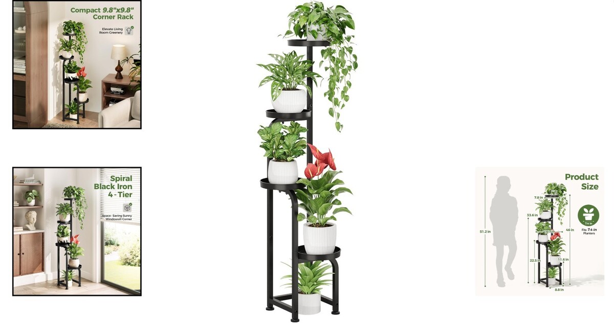 Compact size: Standing at 46 inches tall and 8.8 inches wide at the base, this corner plant stand is perfect for tight spaces.