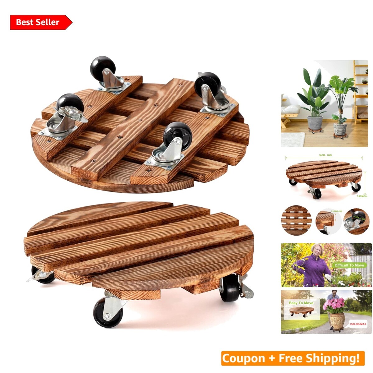 Heavy Duty 12" Wood Plant Caddy with 360° and 48 similar items