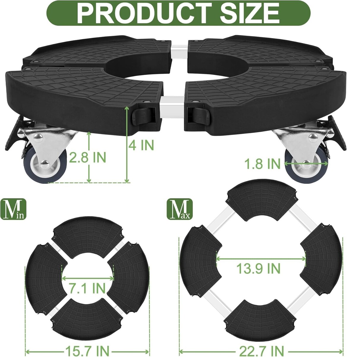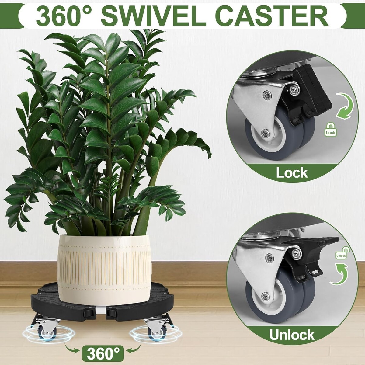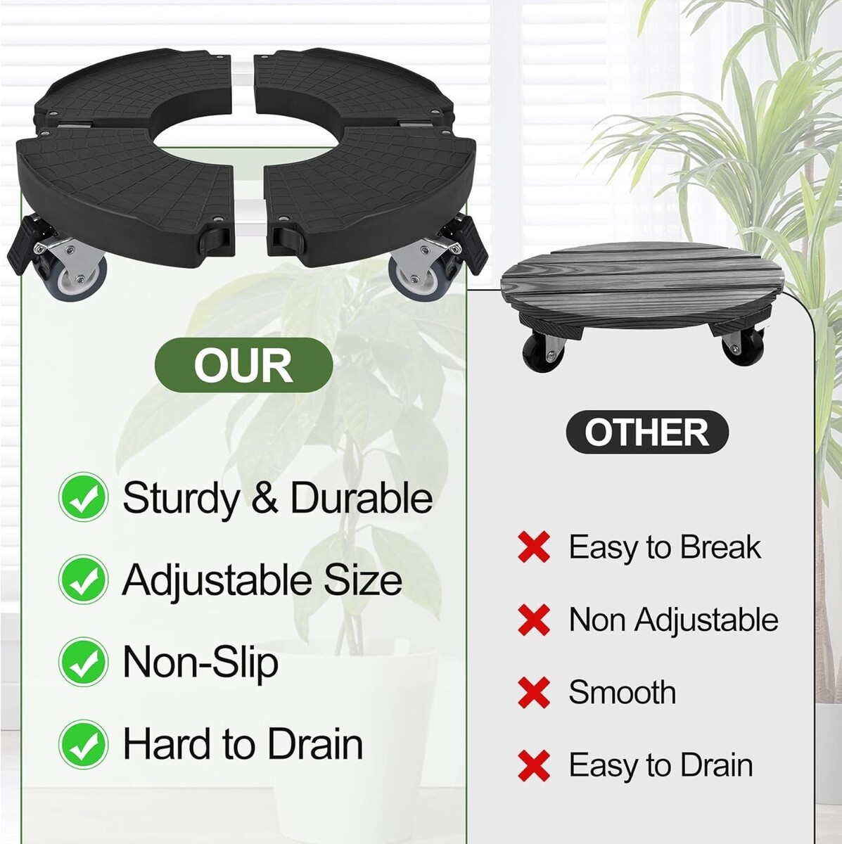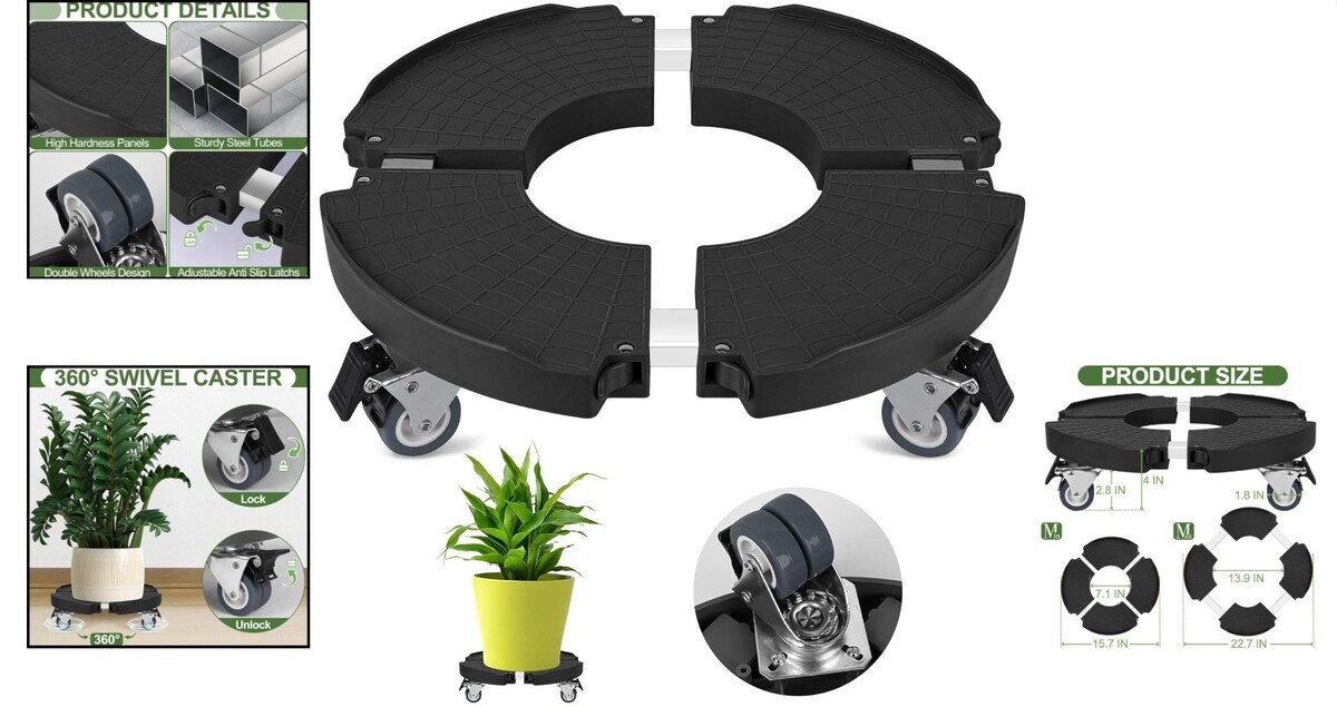 Wide Application: Perfect for various potted plants, garden pots, whiskey barrels, patio umbrellas, and even trash cans with a weight capacity of up to 440lbs.
