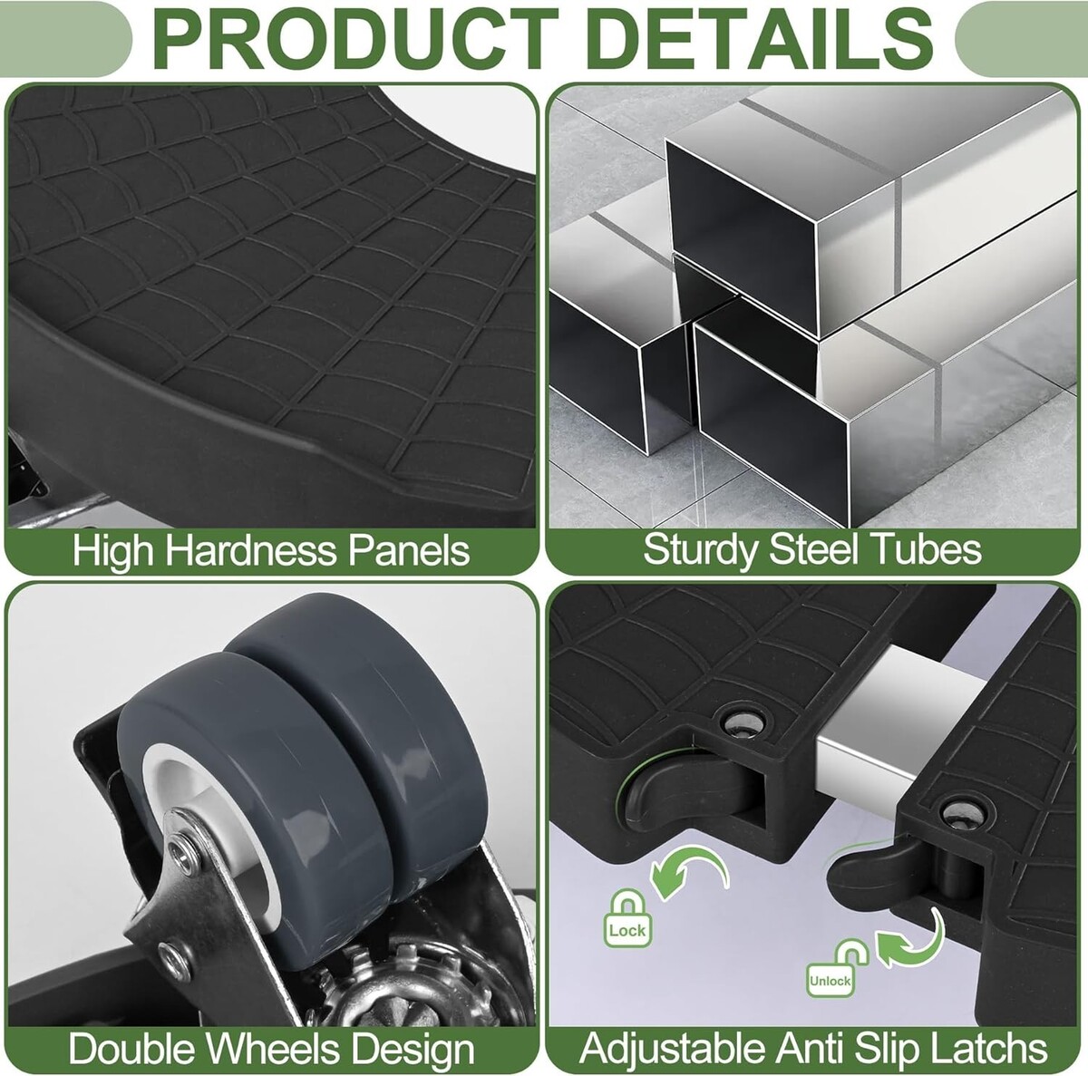 Features: Adjustable,Heavy Duty,Rotatable,Locking Design,Shock-Absorbing,360 Wheels,Adjustable Size,Grid Pattern Design,Sturdy Construction,Stable in Place