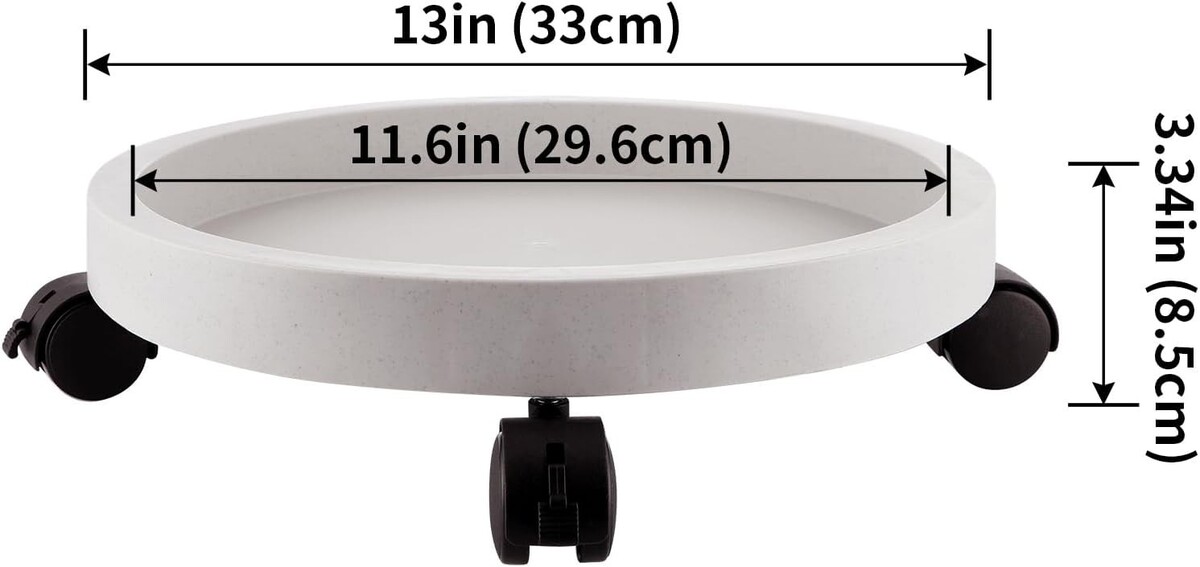 Size: Outer diameter is 13 inches, inner diameter is 11.6 inches. The overall height with wheels is 3.34 inches.