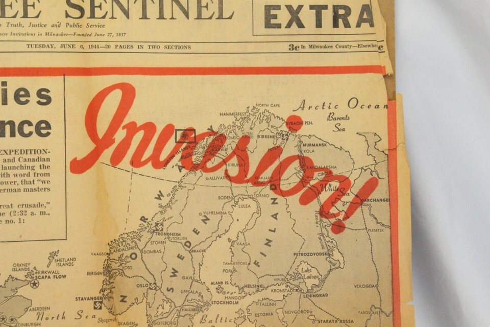Original WWII June 6 1944 Milwaukee Sentinel Newspaper INVASION D-Day