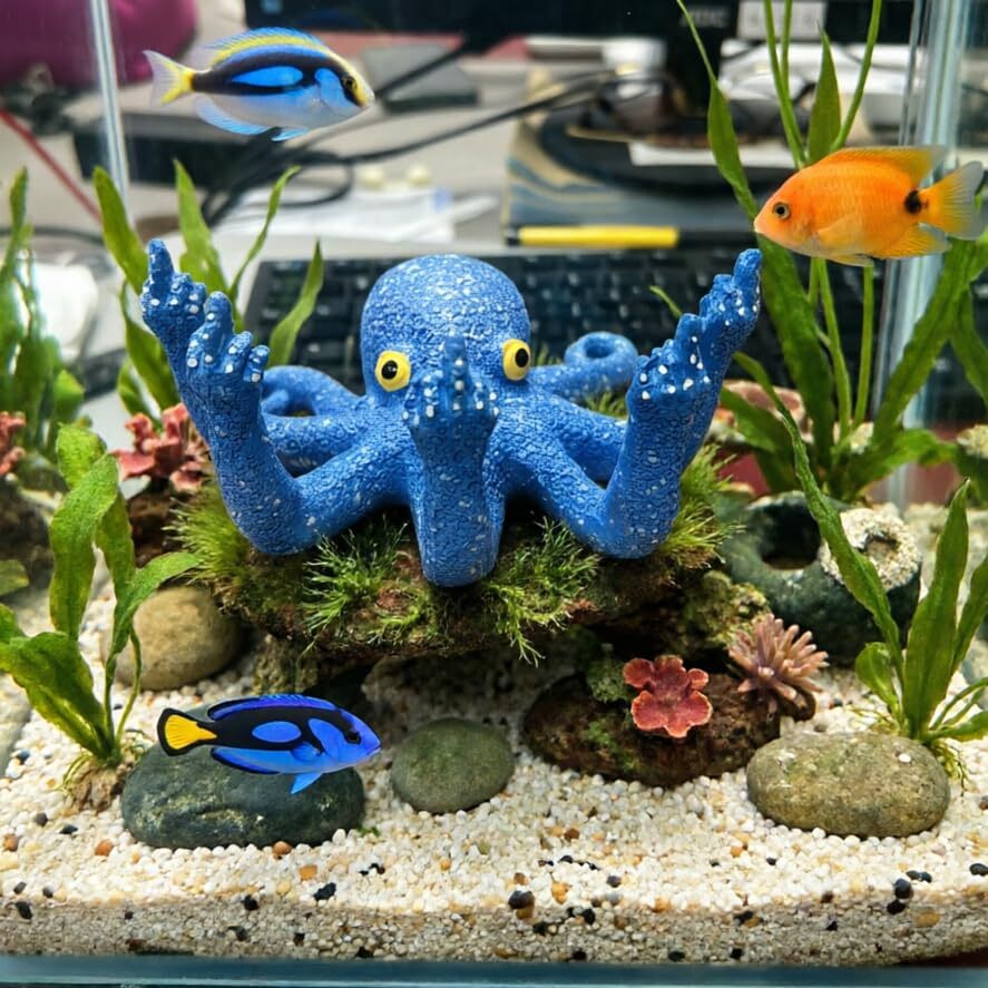 Blue Resin Octopus Aquarium Ornament, Funny and 25 similar items