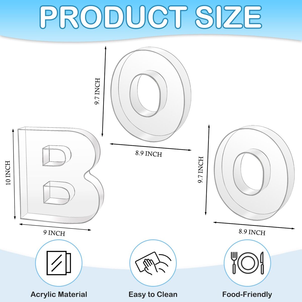 Party Essential: Included 3 premium acrylic charcuterie letters fillable (letter BOO) ready for immediate use. Its sleek, transparent design doubles as a stunning visual centerpiece, guests will remember your event for its elegant simplicity and thoughtful details,Innovative Letter Number Aesthetics: The semi-transparent acrylic material casts a soft, ambient glow under lighting, adding a luxurious touch to desserts, fruits, and more. These charcuterie board letters transform any party or event into an artistic display that impresses guests with its modern elegance,Optimal Proportions for Display: With a perfect 10-inch height and 1.6-inch depth, this letter charcuterie board box offers ample space for candies, chocolates, cupcakes, floral arrangements, appetizers, and more?striking the ideal balance between functionality and visual appeal,Food-Grade Durable Acrylic: Crafted from premium food-grade clear acrylic, this acrylic letter tray is durability, resisting deformation and wear over time. These letter food trays feature a specially treated surface that is smooth, oil-resistant, and easy to clean?simply rinse with water or wipe them down to restore their pristine clarity,Versatile All-Occasion Essential: These charcuterie letters perfect forbaby showers, birthdays, weddings, Halloween and anniversaries, memorials, and even home decor, these acrylic fillable letters seamlessly adapts to any setting