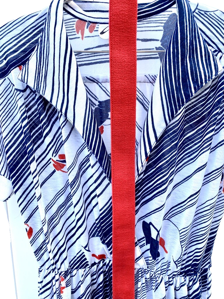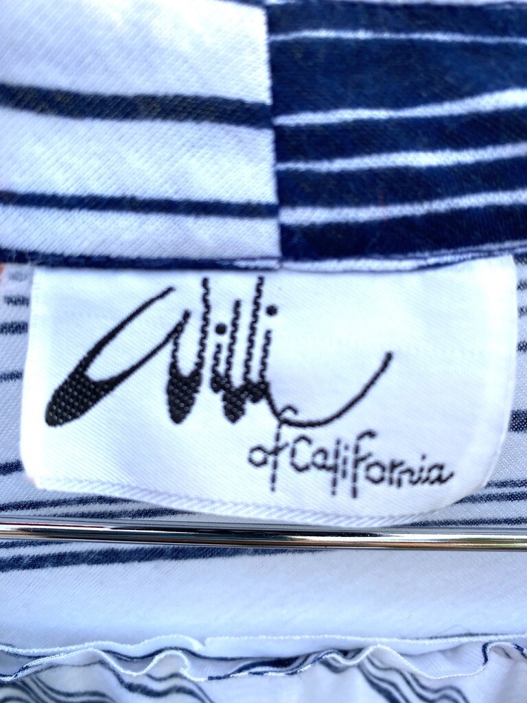 WILLI of California was a respected Los Angeles label known for bright prints, knit dresses, and easy-to-wear designs during the 1960s?70s. Their dresses offered youthful styling at accessible prices, making them a favorite among American women. This piece, with its patriotic palette and floral motif, reflects the mod influence of the era while staying versatile and comfortable.