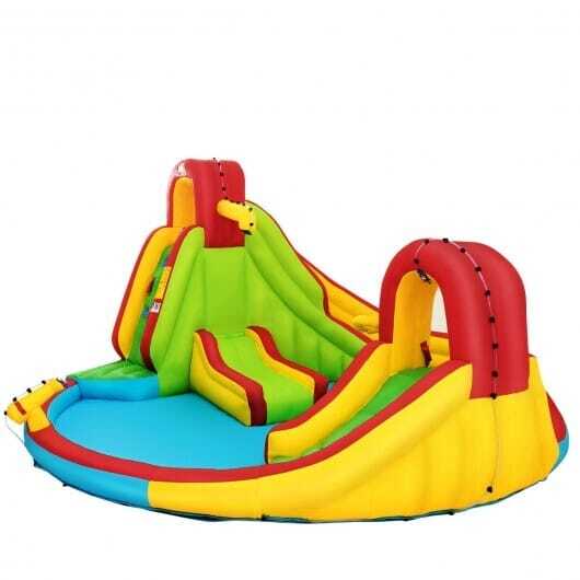 Kid's Inflatable Water Slide Bounce House with Climbing Wall and Pool Without Blower - Color: Multicolor