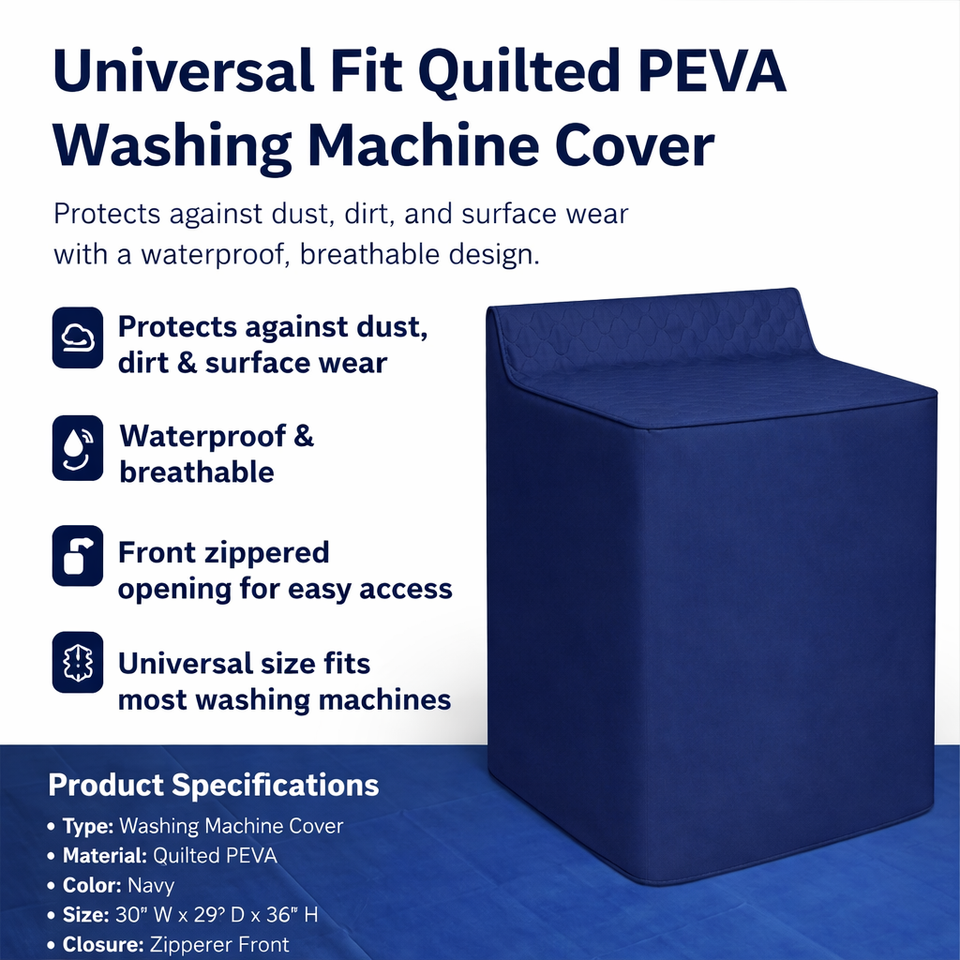 Washing Machine Cover Waterproof Quilted PEVA Zippered Heavy Duty Blue
