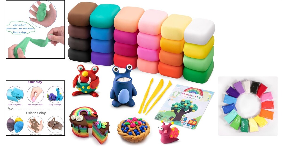 Safe Air Dry Clay Kit - 24 Colors Tools - Perfect DIY Gift for Kids Adults